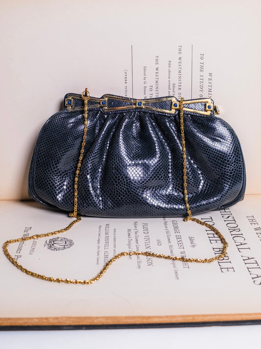 Vintage 1980s Ashneil Navy & Gold Accent Clutch Evening Bag
