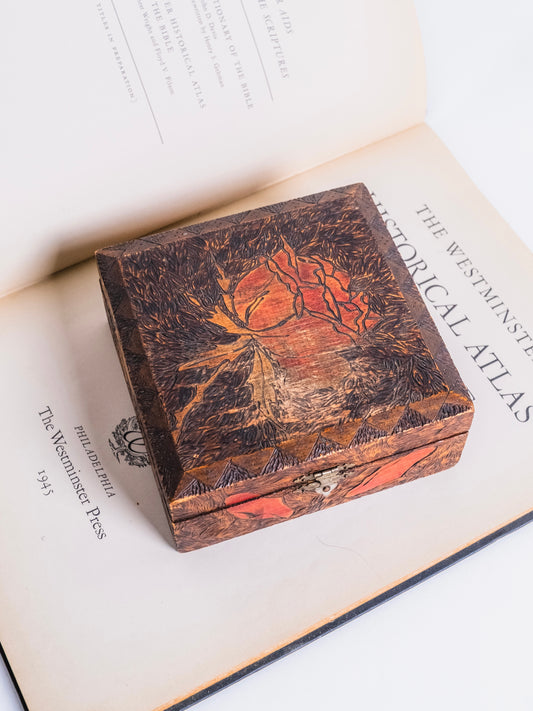 Antique 1920s Wood Pyrography Floral Pattern Box