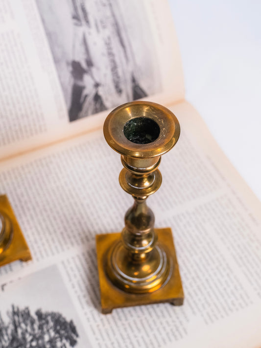 Vintage 1950s Solid Brass Candlestick Holders | Set of 2