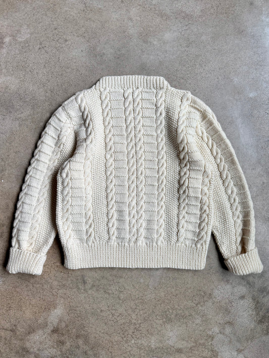 Vintage Hand-Knit Cream Cable Knit Sweater | Large