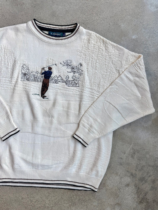 Vintage 1980s Carmel Golfer Embroidered Cotton Sweater | XL