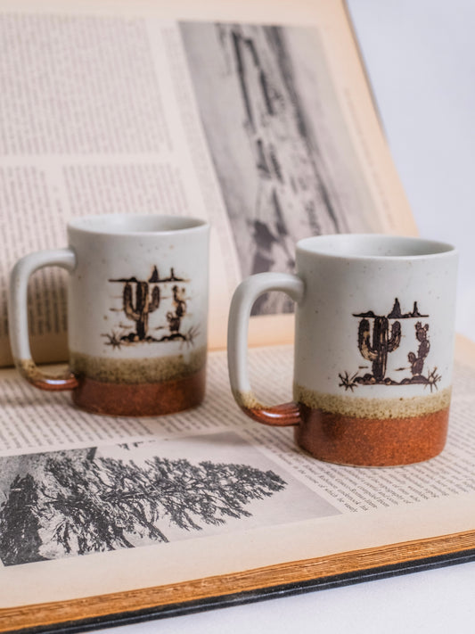 Vintage 1970s Otagiri Ceramic Pottery "Western Cactus" Mugs | Set of 2