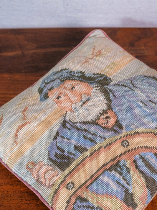 Vintage 1950s Ship Captain Tapestry Throw Pillow