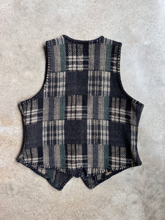 Vintage 1990s Solutions Patchwork Plaid Wool-Blend Vest | Medium
