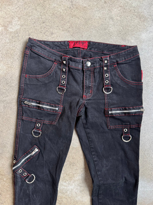 2000s Tripp NYC Black & Red Stitch Studded D-Ring Skinny Jeans | Medium