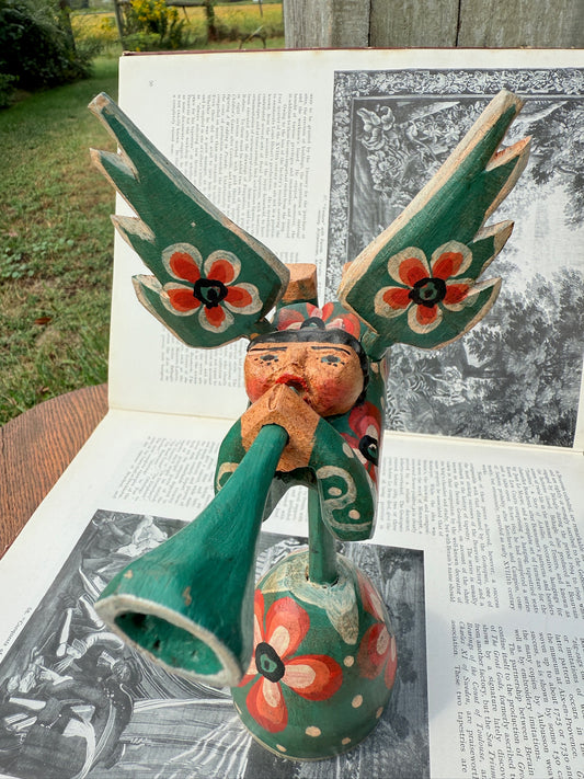 South American Wood Folk Art Flying Angel Statue