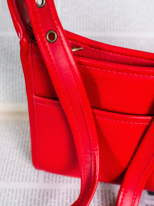 Vintage 1970s Red Leather Coach-Style Crossbody Bag