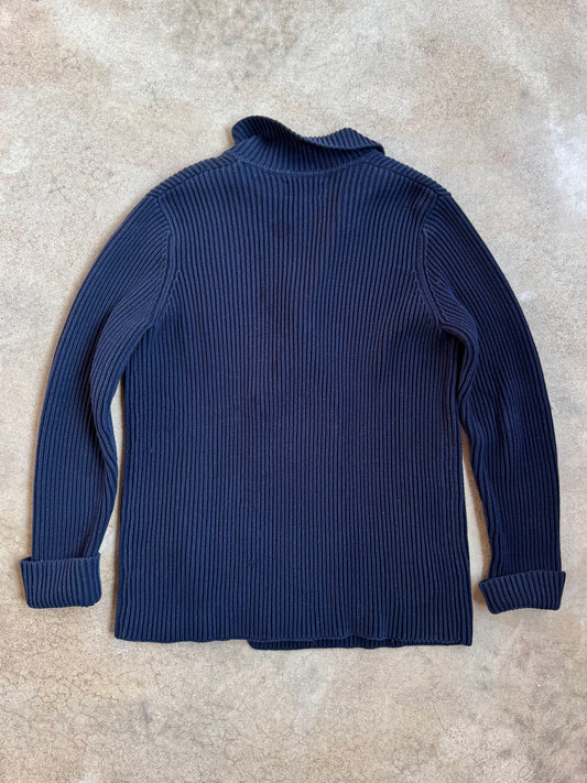 Vintage 1990s Lauren Ralph Lauren Navy 100% Cotton Knit Nautical Cardigan | Medium