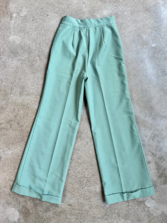Vintage 1970s Paul Harris Mint Green Cuffed Wide-Leg Trousers | Waist 26”