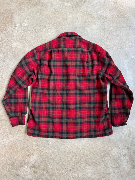 Vintage 1960s Pendleton Red & Green Plaid Wool Flannel Shirt | Large