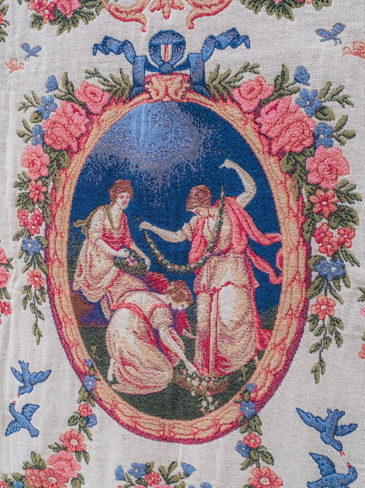 Vintage 1990s Goodwin Weavers Pink Regency-Style Cotton Tapestry Blanket