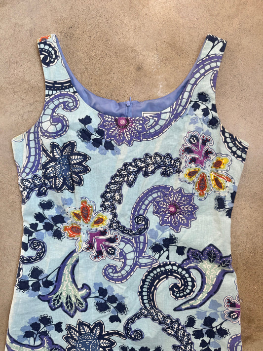 Vintage 1990s Willow Glenn Beaded Floral Linen Sheath Dress | Medium