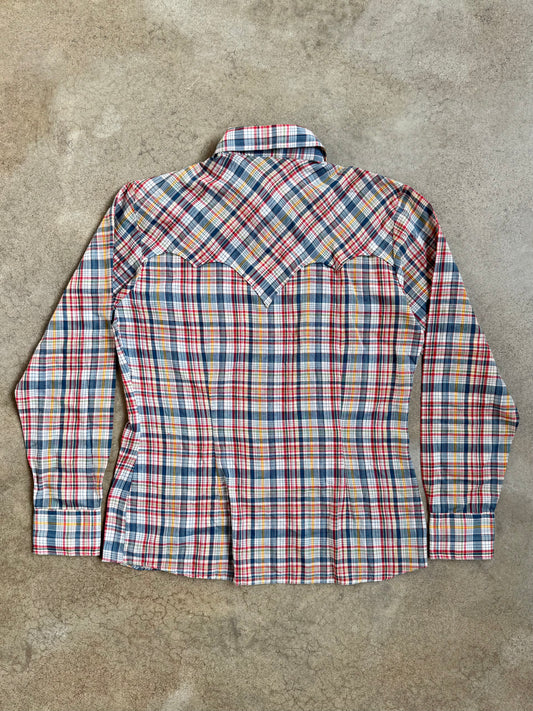 Vintage 1960s Chess King Multi-Color Plaid Western Pearl Snap Shirt | Large