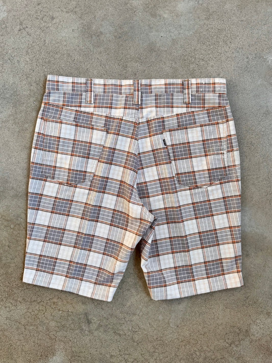 Vintage 1970s Levi’s Tan Plaid Flat Front Chino Shorts | Waist 36”