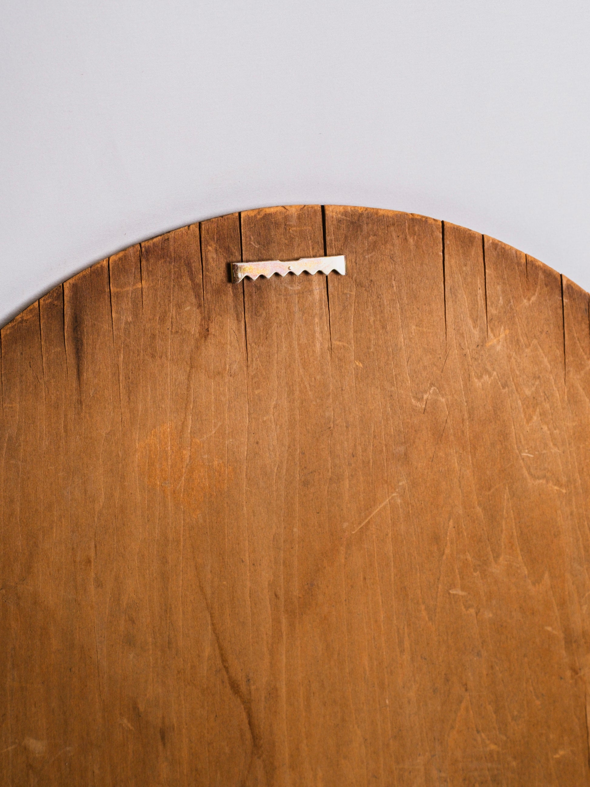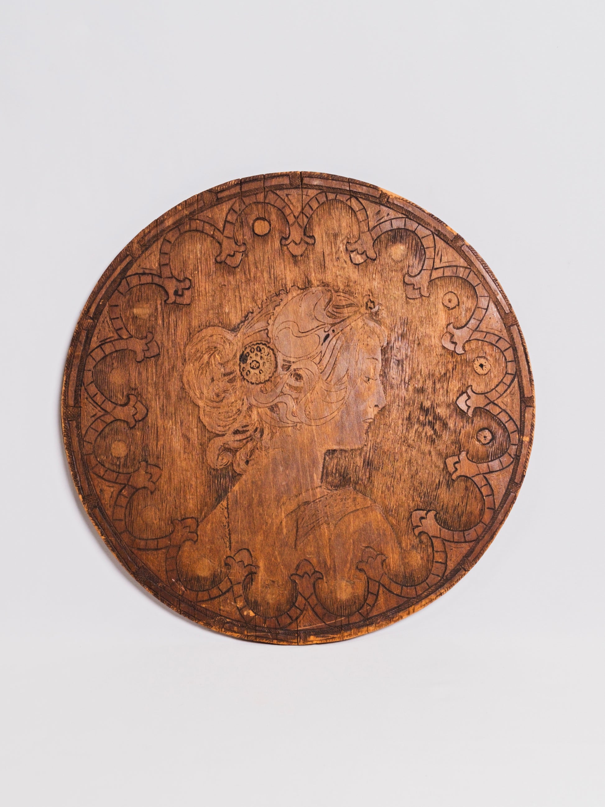 Antique 1900s Art Nouveau Round Flemish Wood Pyrography Woman Portrait Wall Art