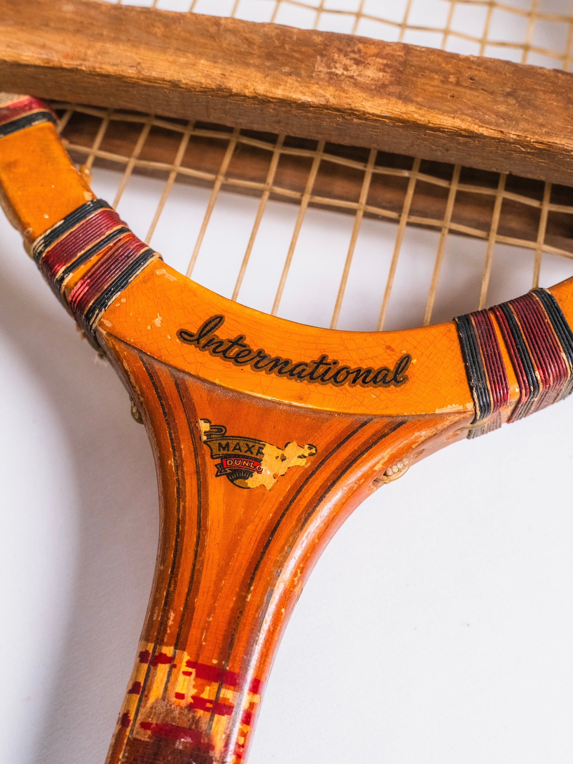 Vintage 1920’s Dunlop Maxply International Wooden Tennis Racket w/ Head Press