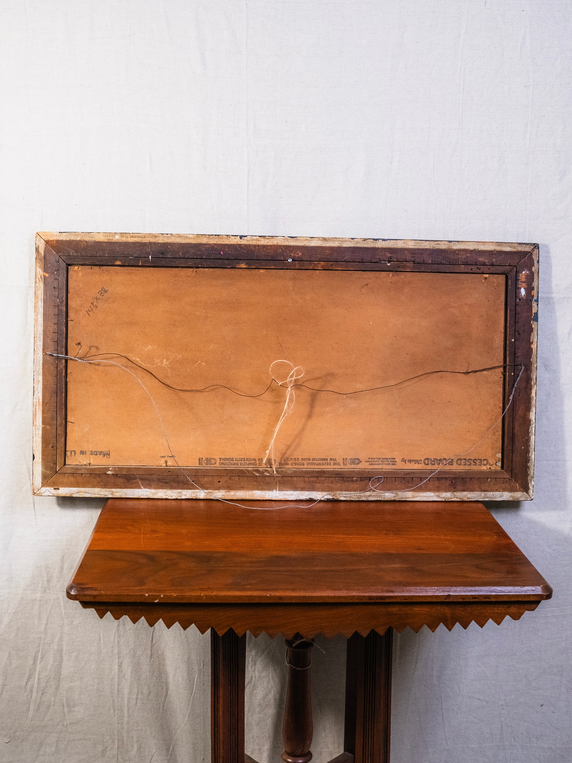 Vintage 1940s Framed Rustic Folk Art Farm Landscape Oil Painting on Board.