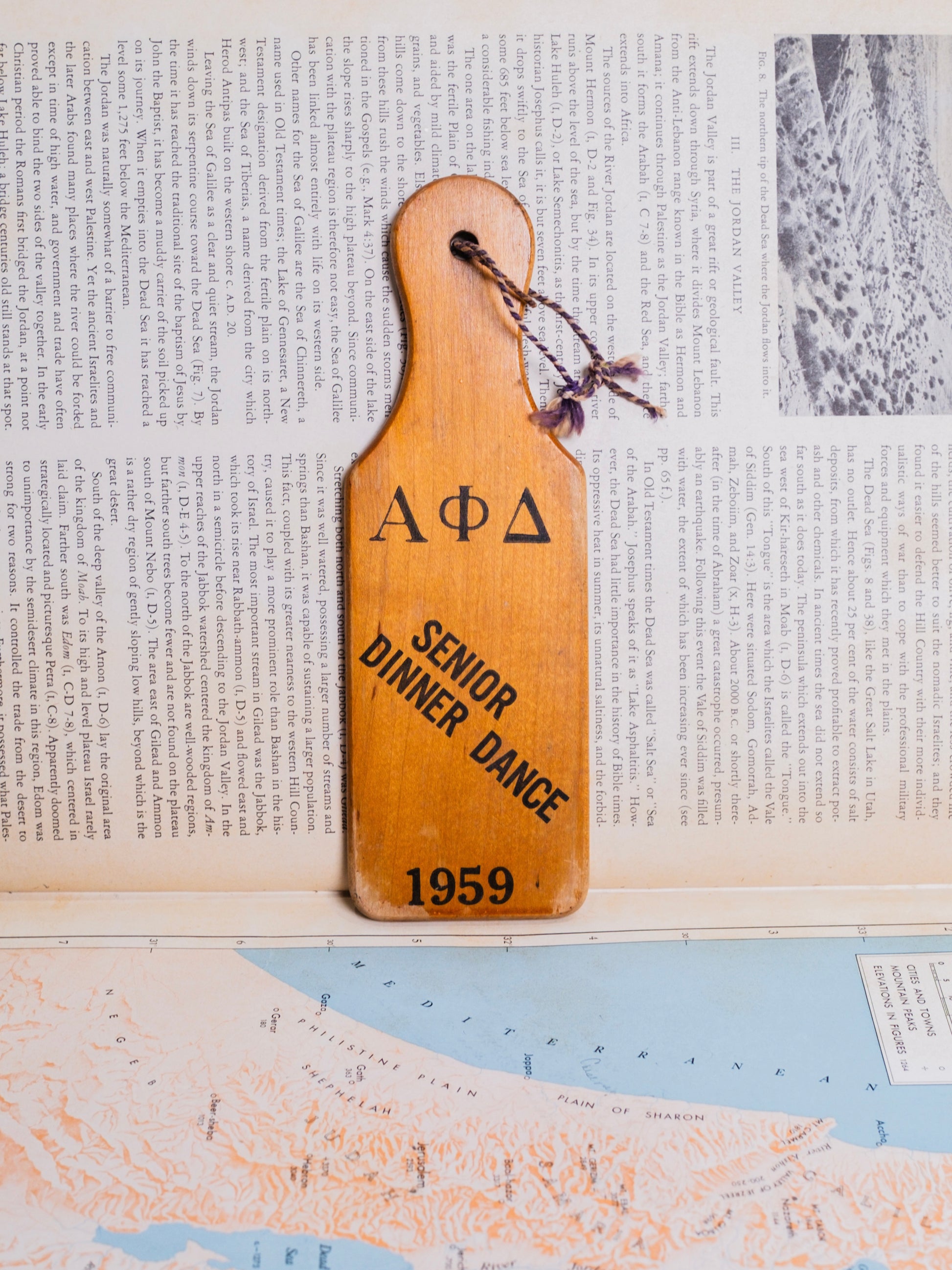 Vintage 1959 Alpha Phi Delta Fraternity Senior Dinner Dance Pledge Paddle.