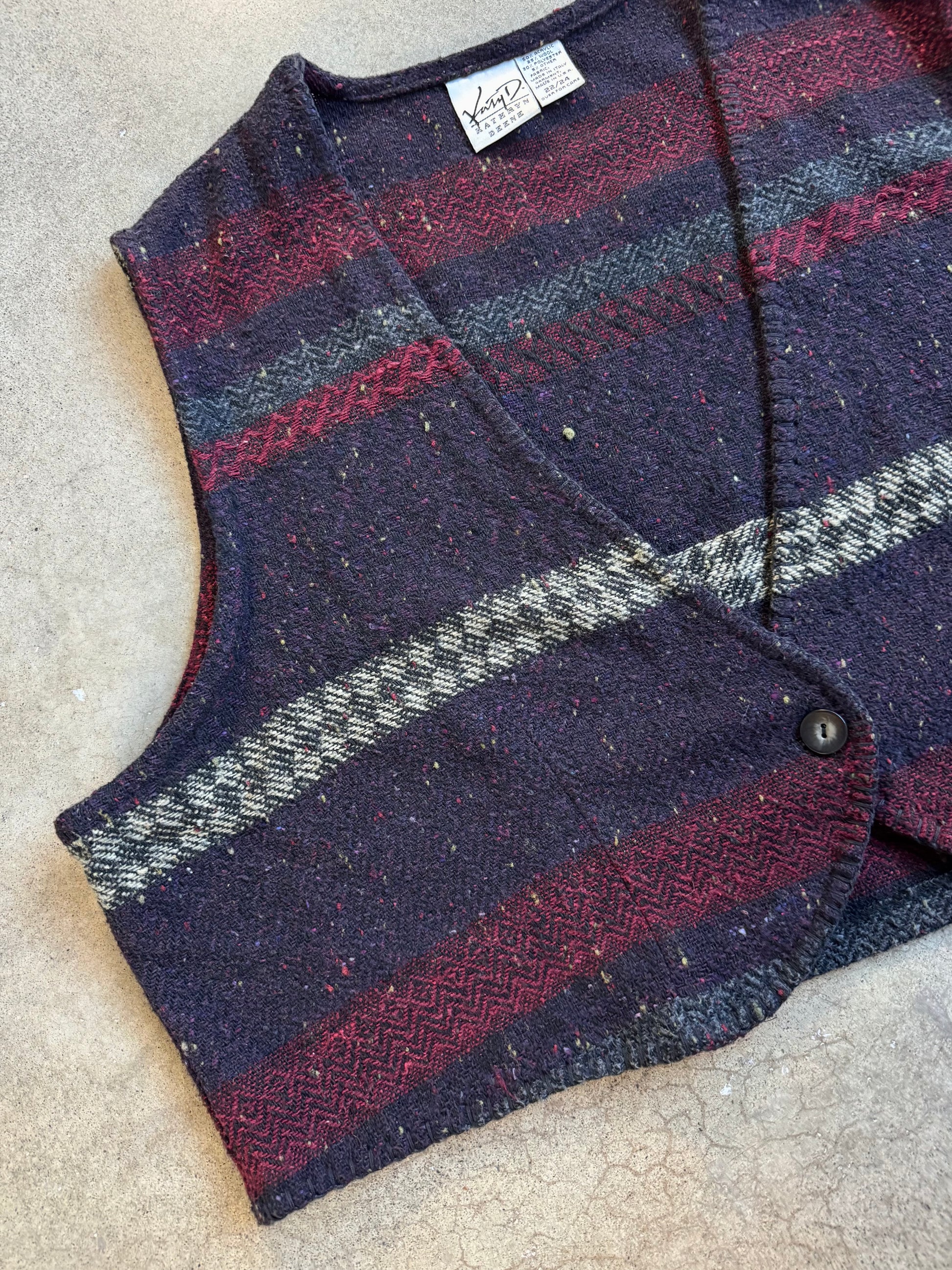 Vintage 1990s Kathryn Deene Purple/Red Speckle & Stripe Pattern Wool-Blend Cropped Vest.