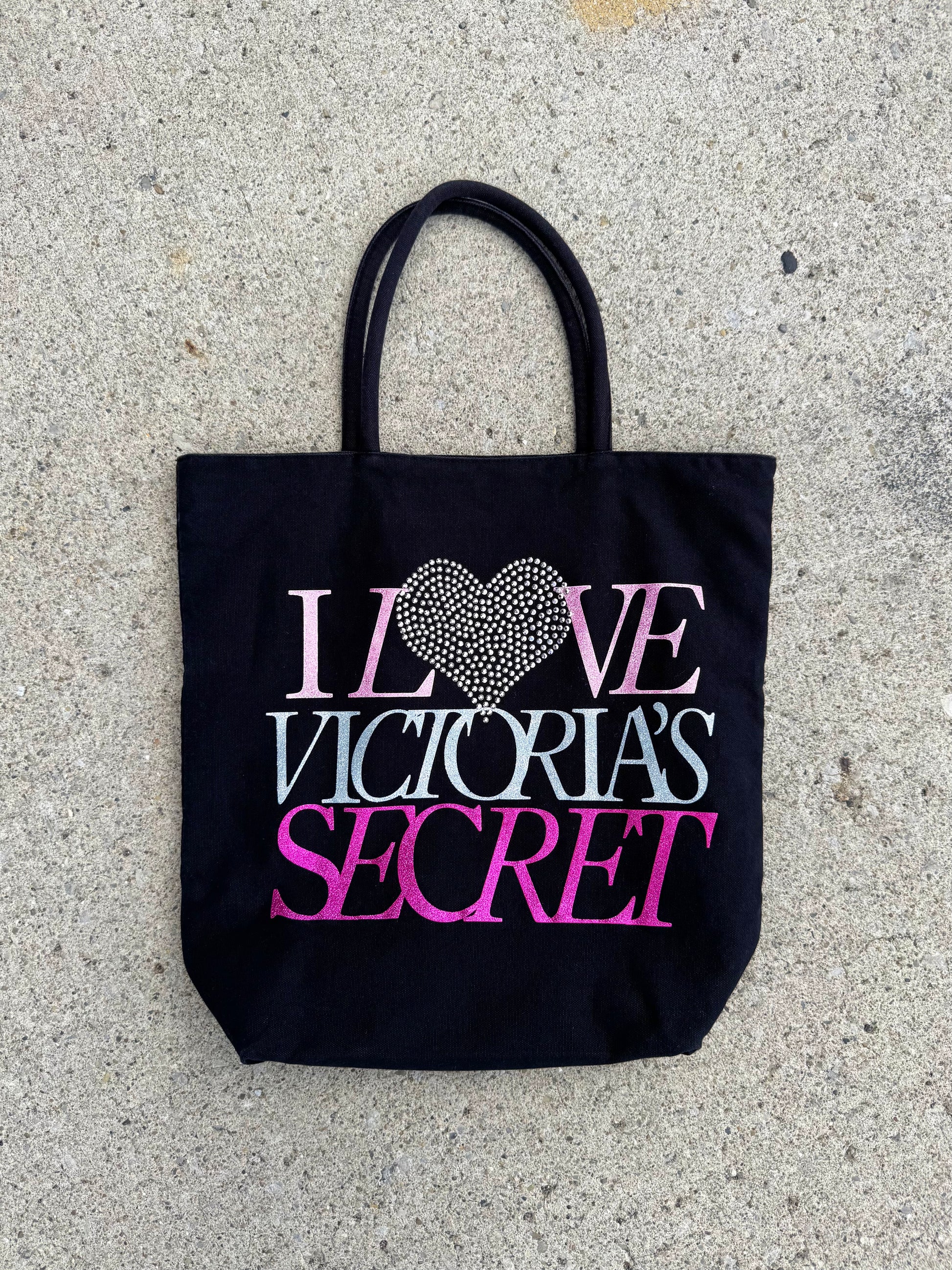 2000s "I Love Victoria’s Secret" Black Rhinestone Tote Bag