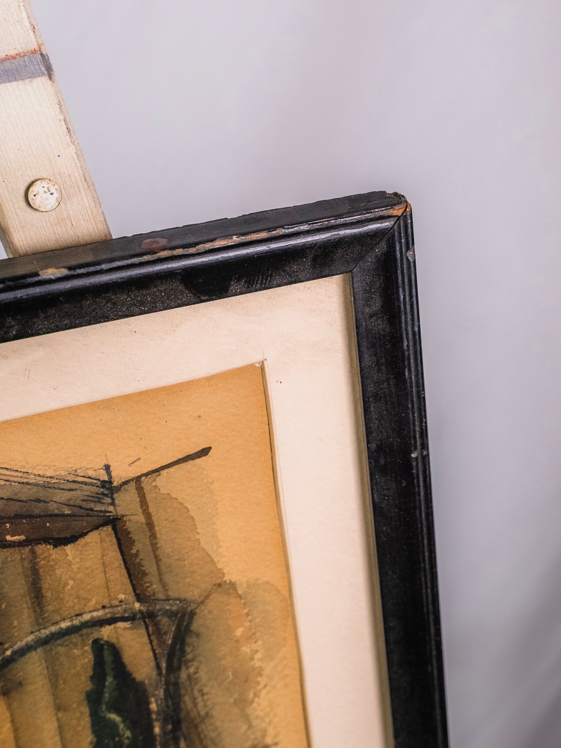 Vintage 1930s Framed & Signed Elof Wedin "Dark Room" Watercolor Art