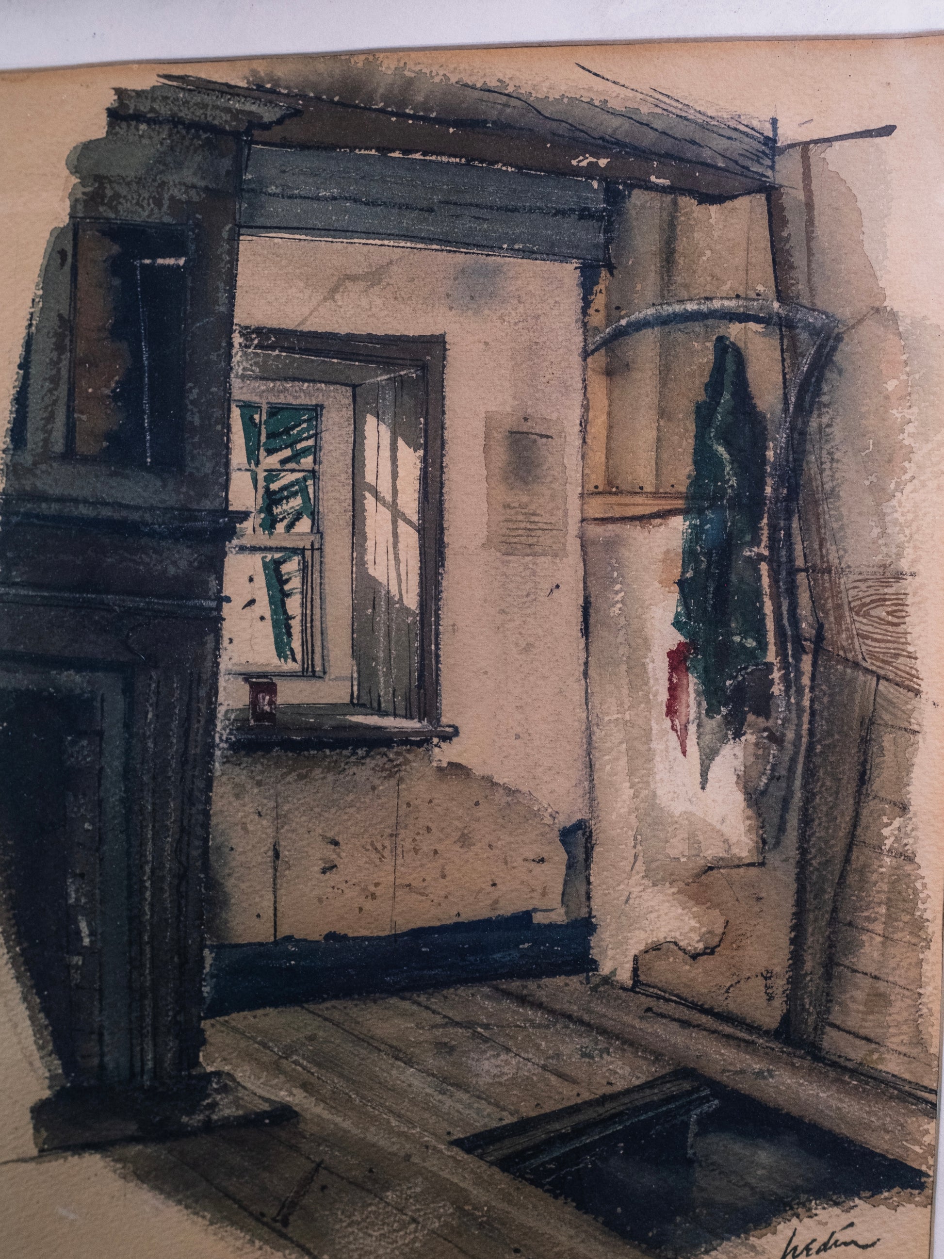 Vintage 1930s Framed & Signed Elof Wedin “Dark Room” Watercolor Art.