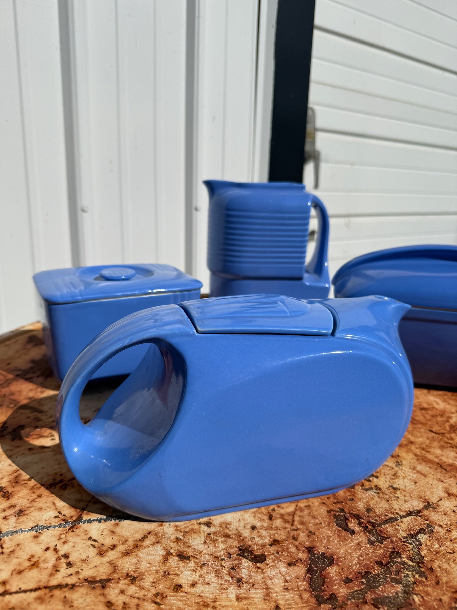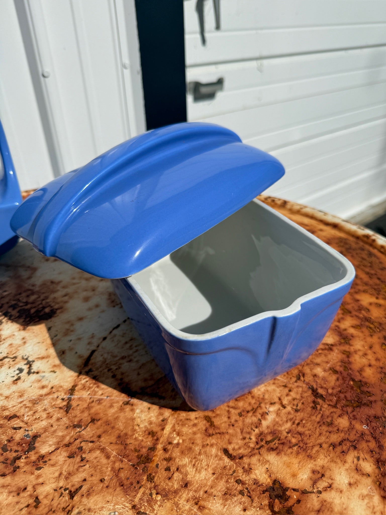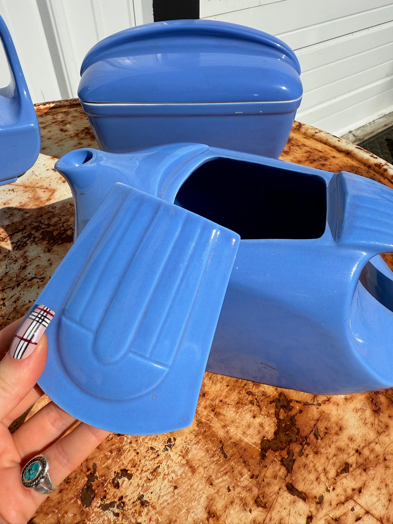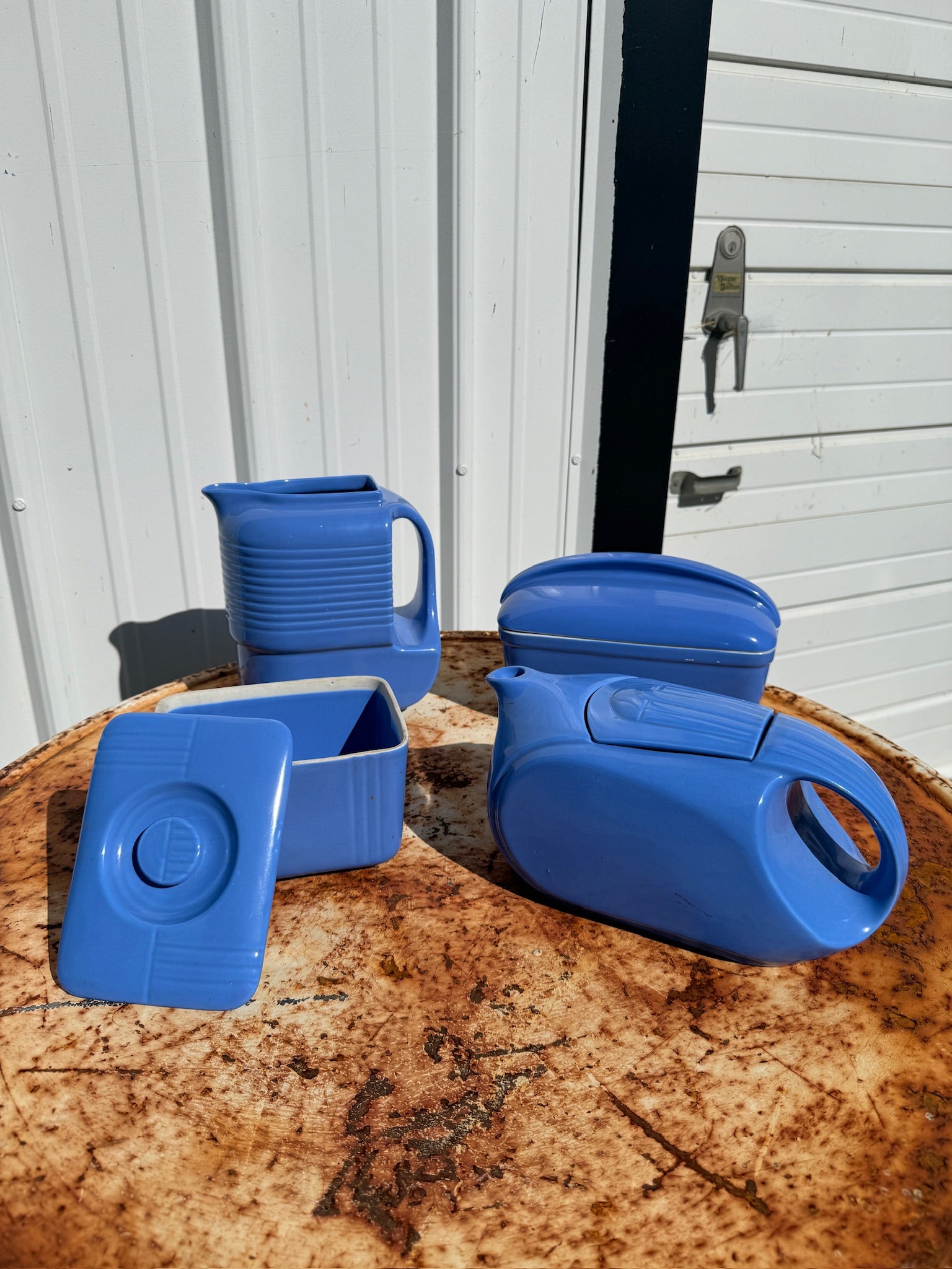 Vintage 1930s The Hall China Co. Westinghouse Blue Ceramic Refrigerator Dish Set.