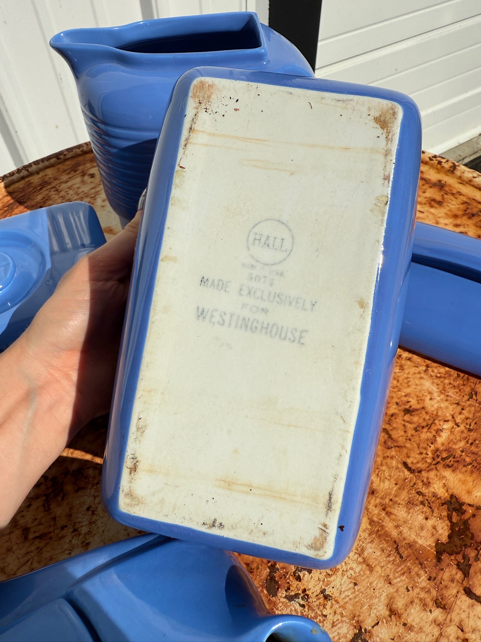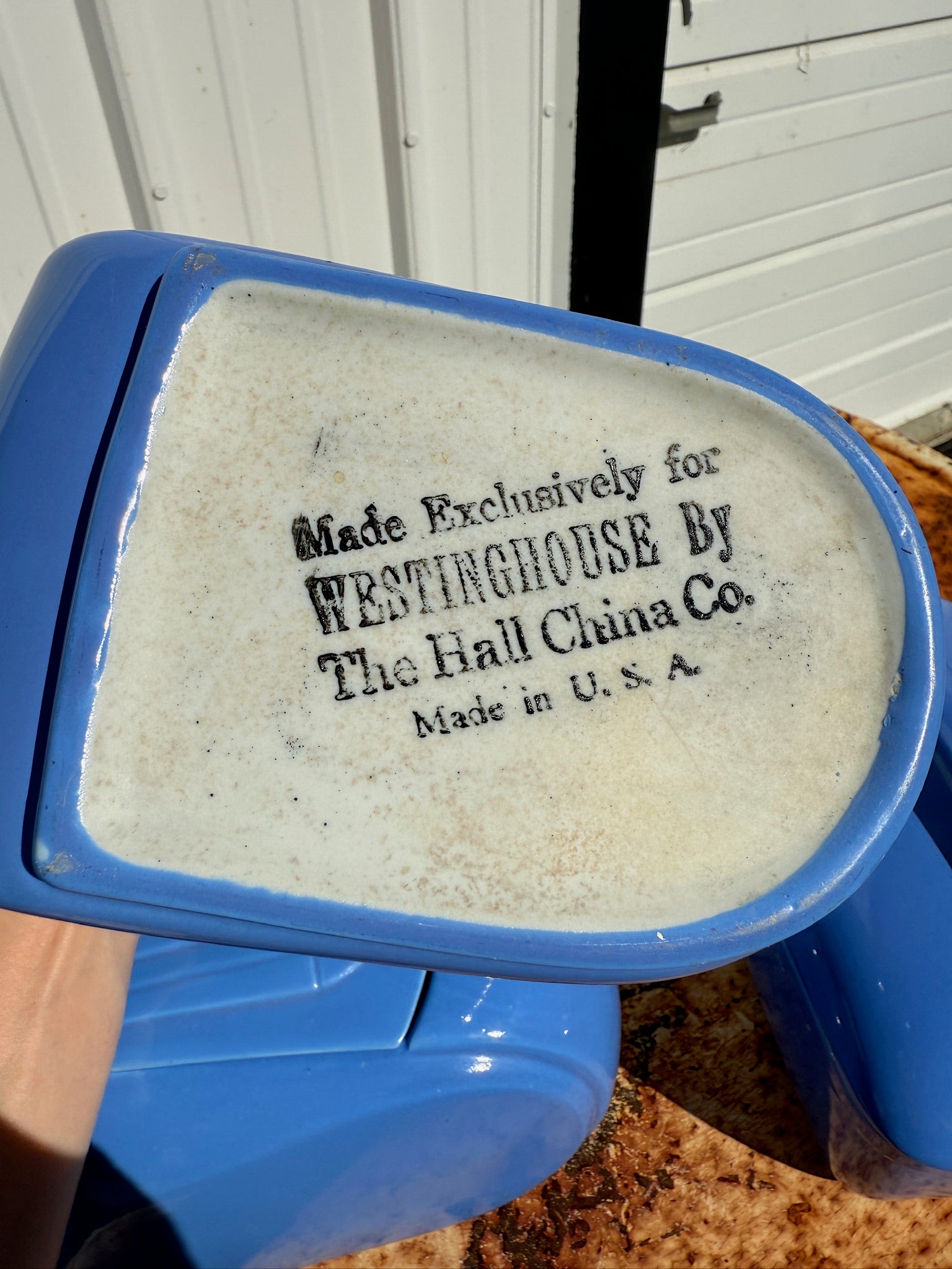 Vintage 1930s Hall China Co. Westinghouse Blue Refrigerator Dish Set