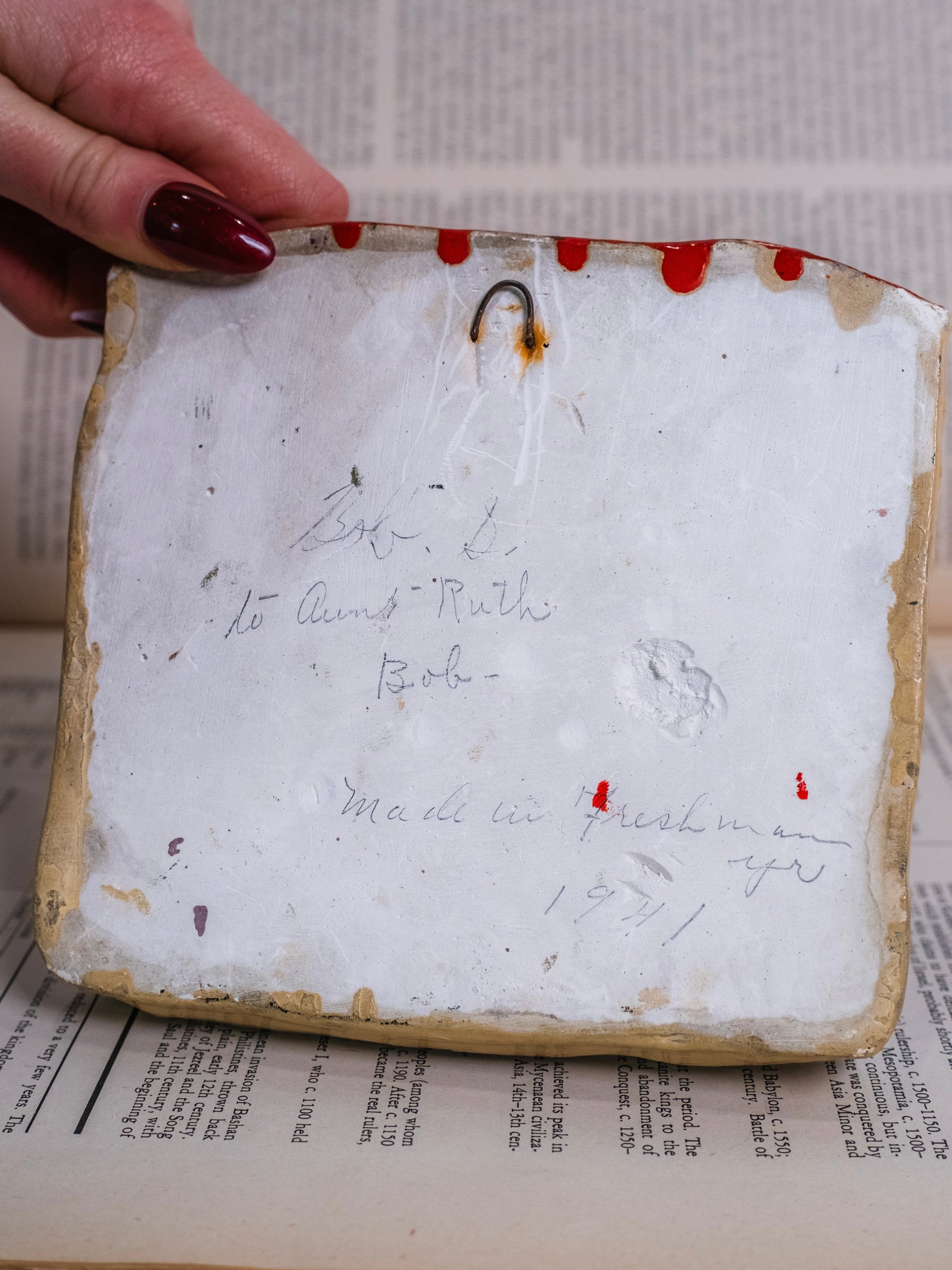 Vintage 1940s Handmade & Signed Chalkware “Farm Boy” Wall Art.