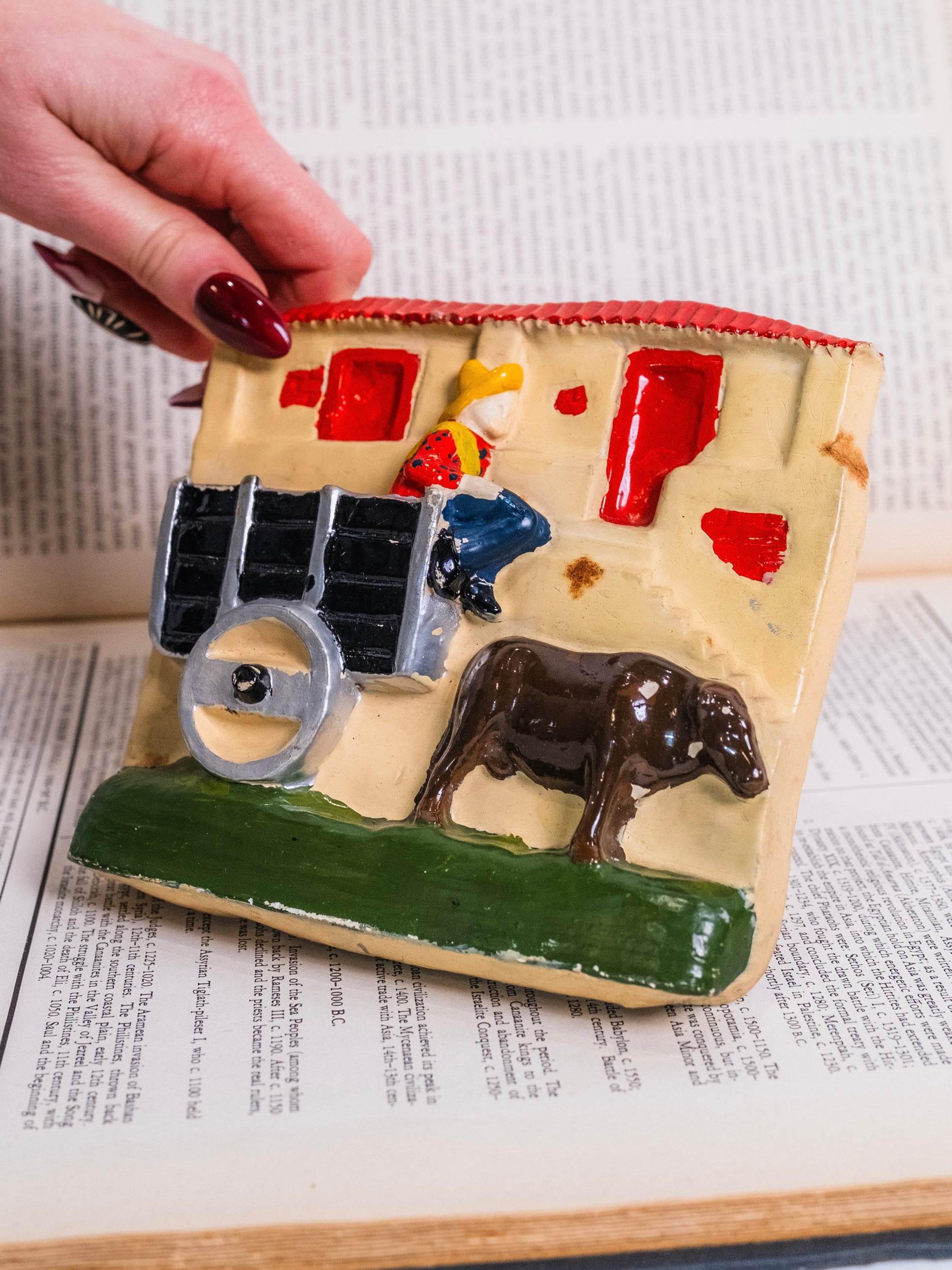 Vintage 1940s Handmade & Signed Chalkware "Farm Boy” Wall Art