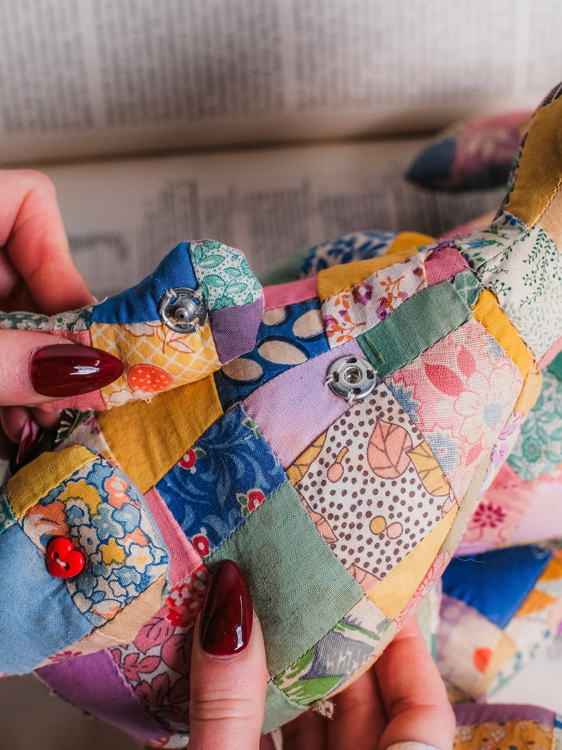 Vintage 1940s Handmade Quilted Patchwork Teddy Bear Set (2).