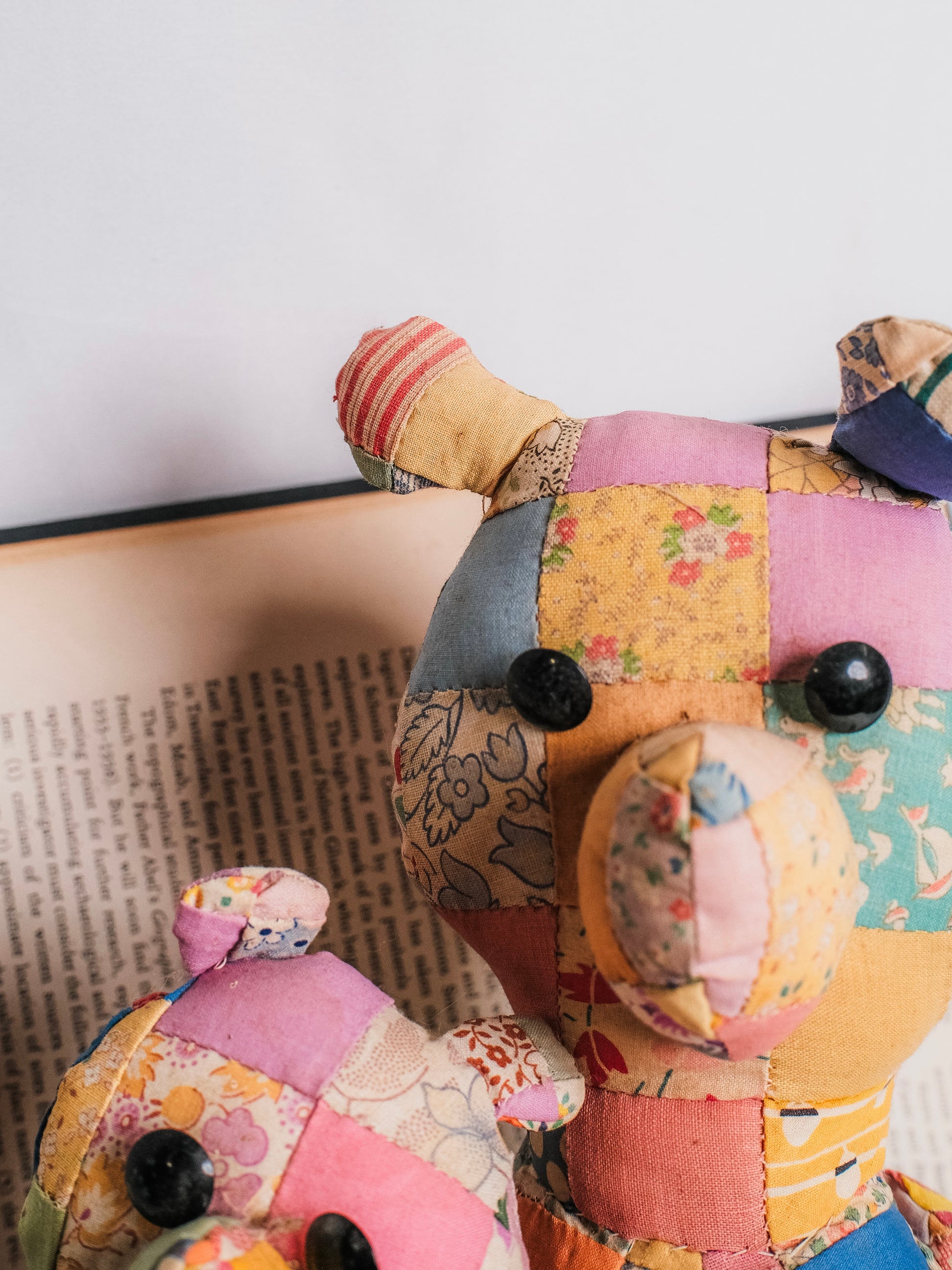 Vintage 1940s Handmade Quilted Patchwork Teddy Bears | Set of 2