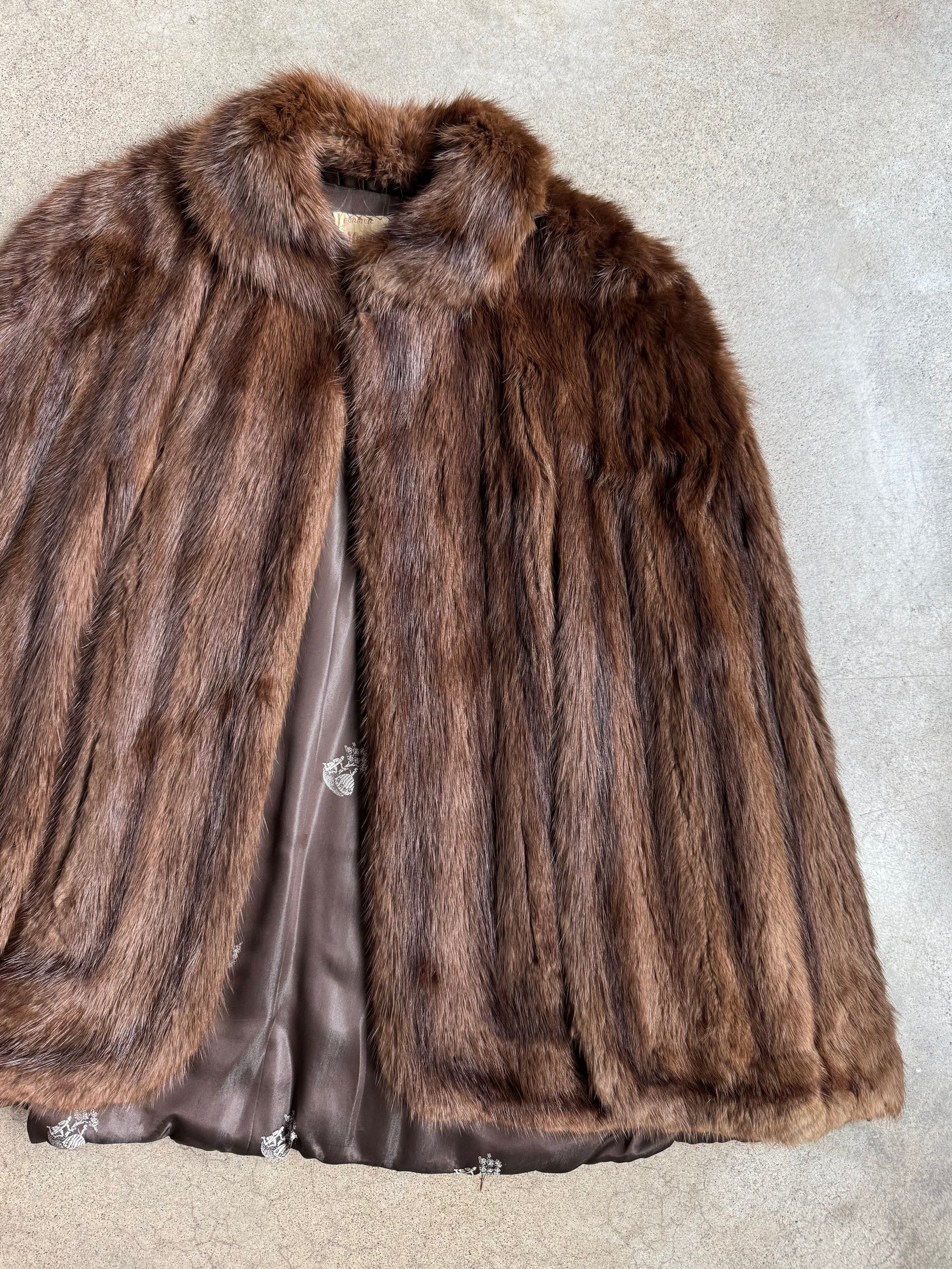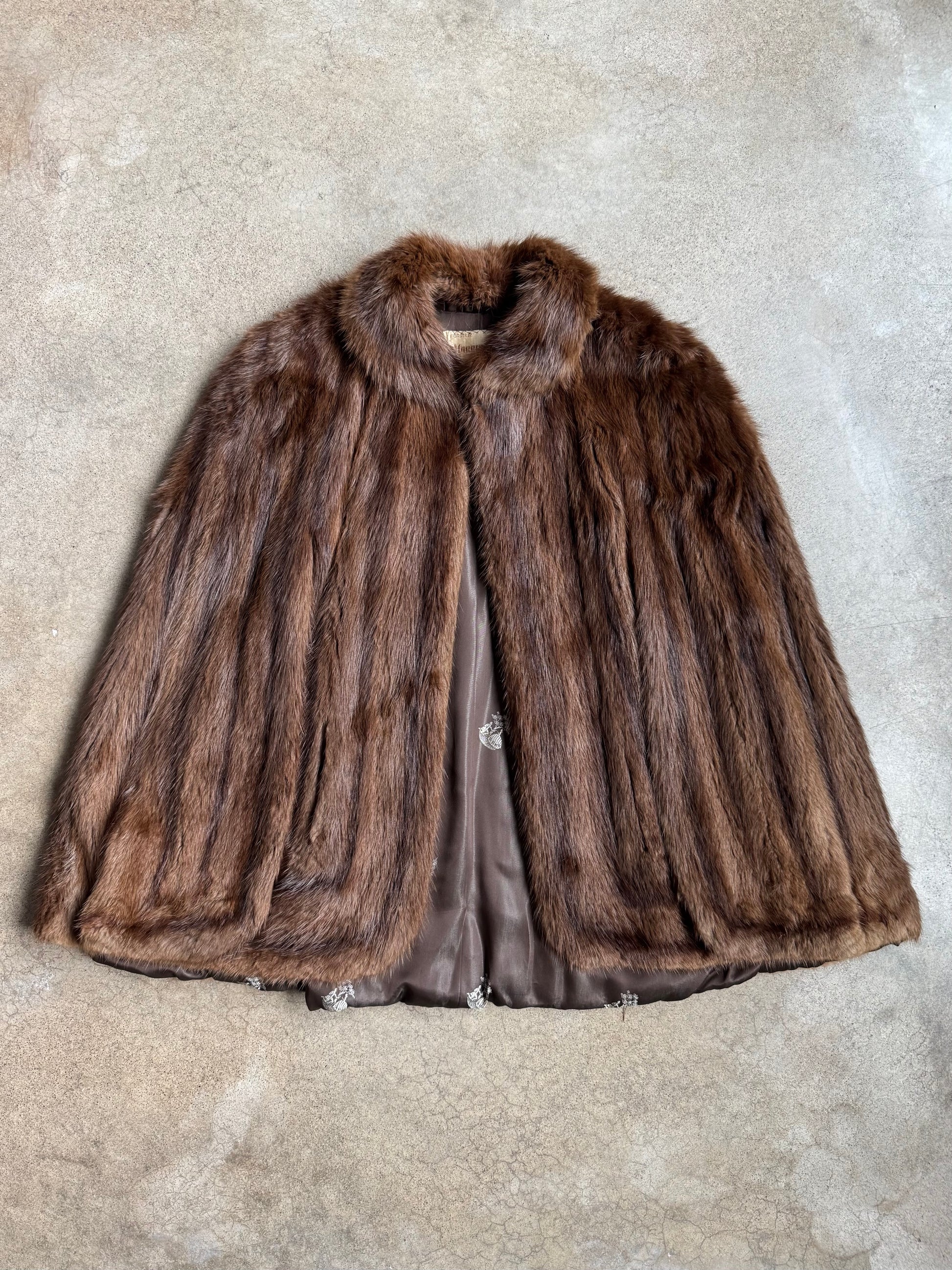 Vintage 1940s Morris Cohen Brown Mink Fur Cape. Fully satin lined.