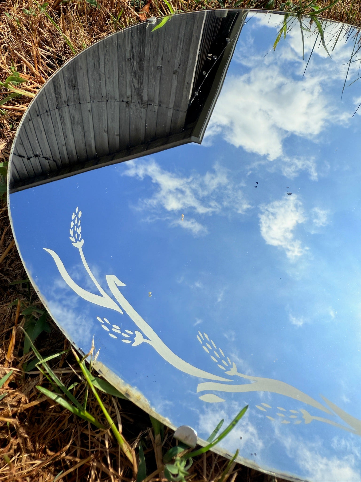 Vintage 1940s Round Floral Printed Mirror.