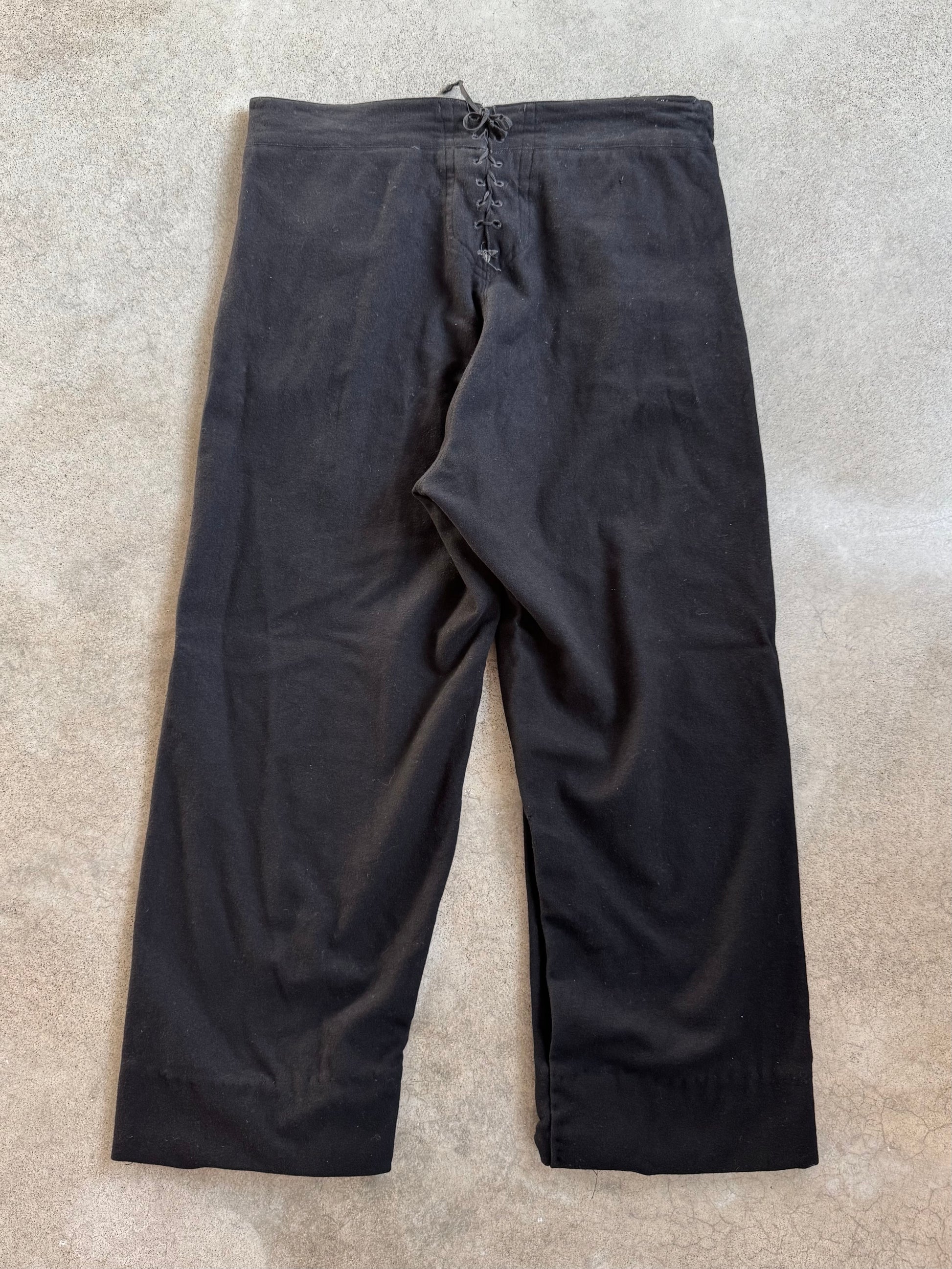 Vintage 1950s Military Issue Black Wool Coast Guard Sailor Pants.