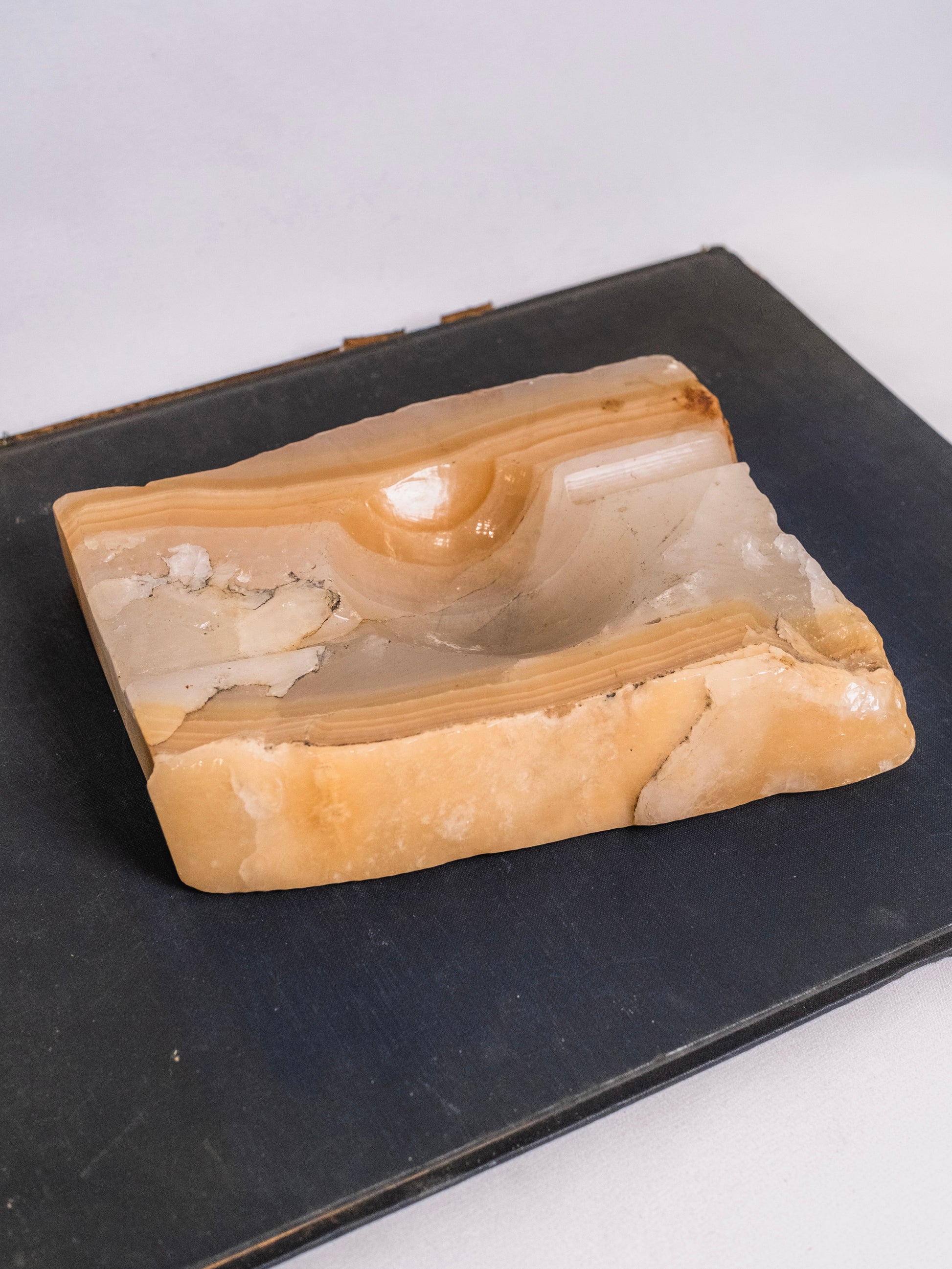 Vintage 1950s Carved Onyx Ashtray.