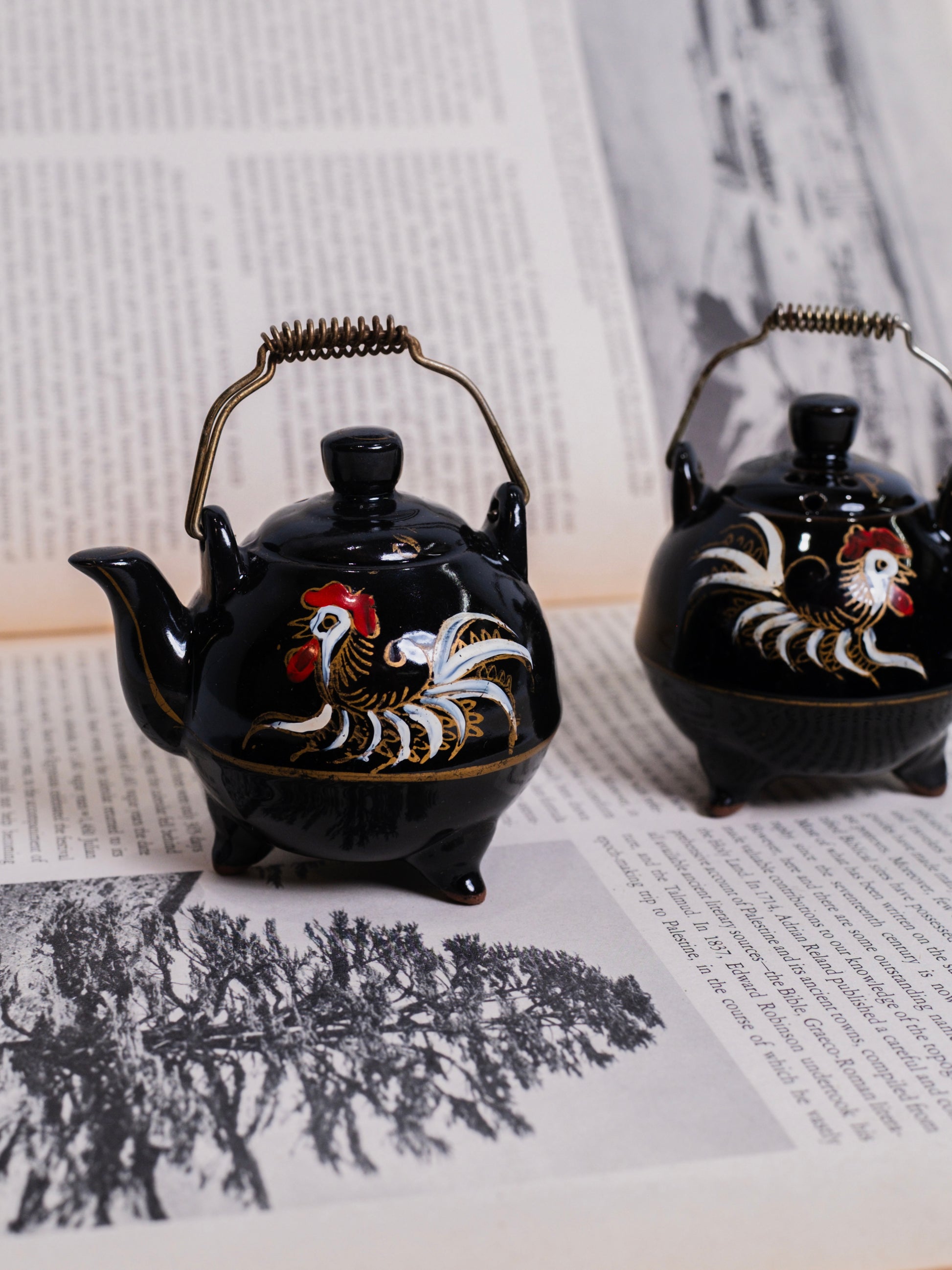 Vintage 1950s Ceramic Japanese Hand-Painted Tea Kettle Salt & Pepper Shaker Set (2).