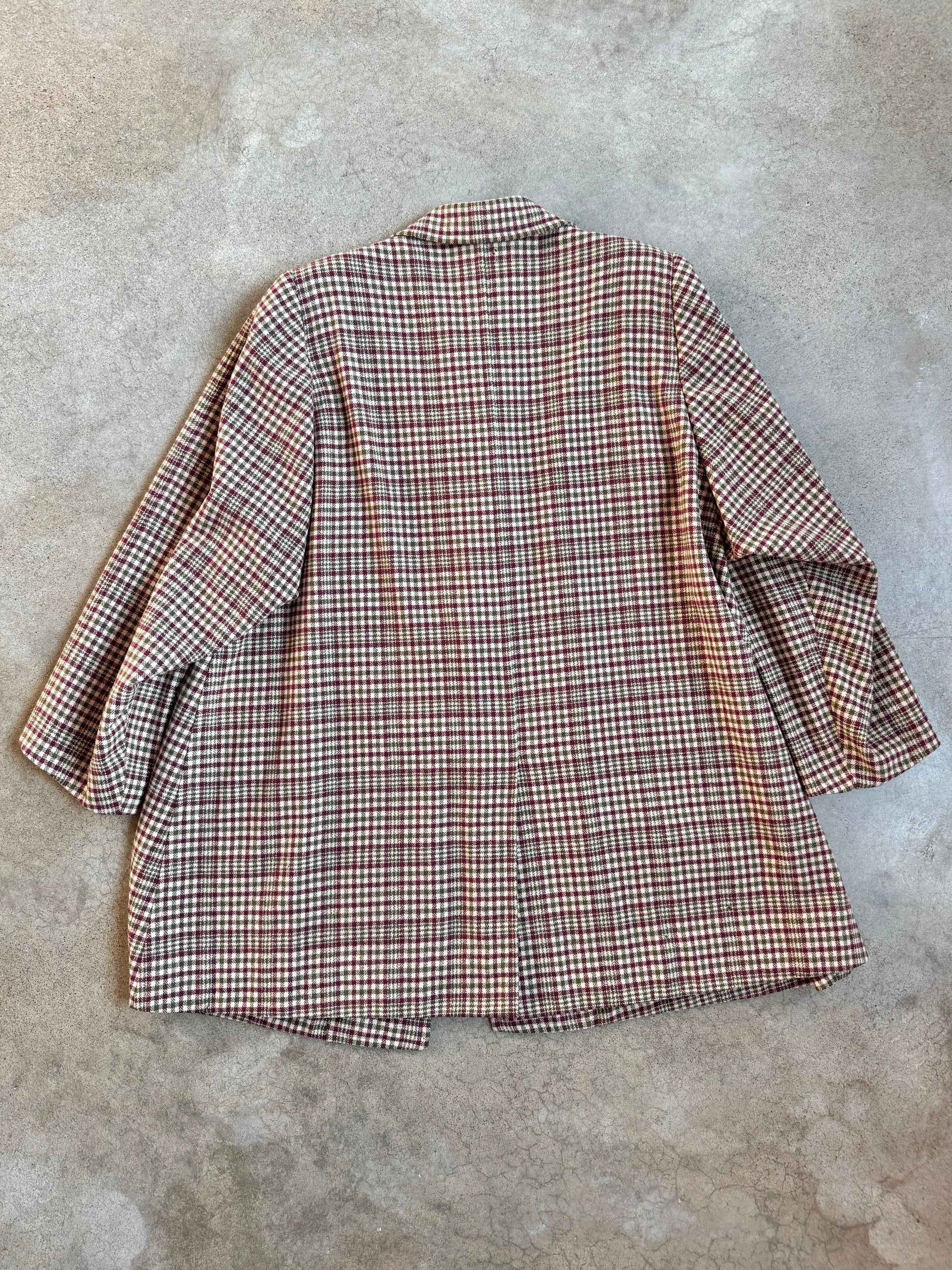Vintage 1950s Chester Barrie Burgundy, Green & Cream Plaid Short Wool Overcoat.