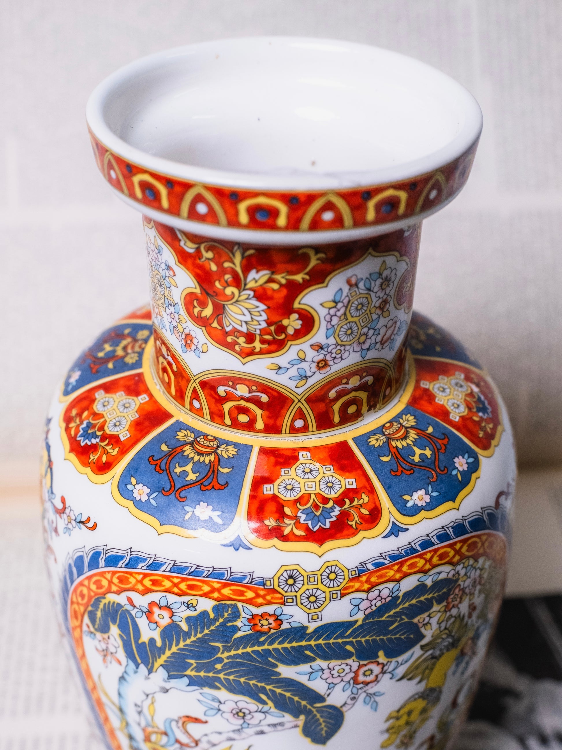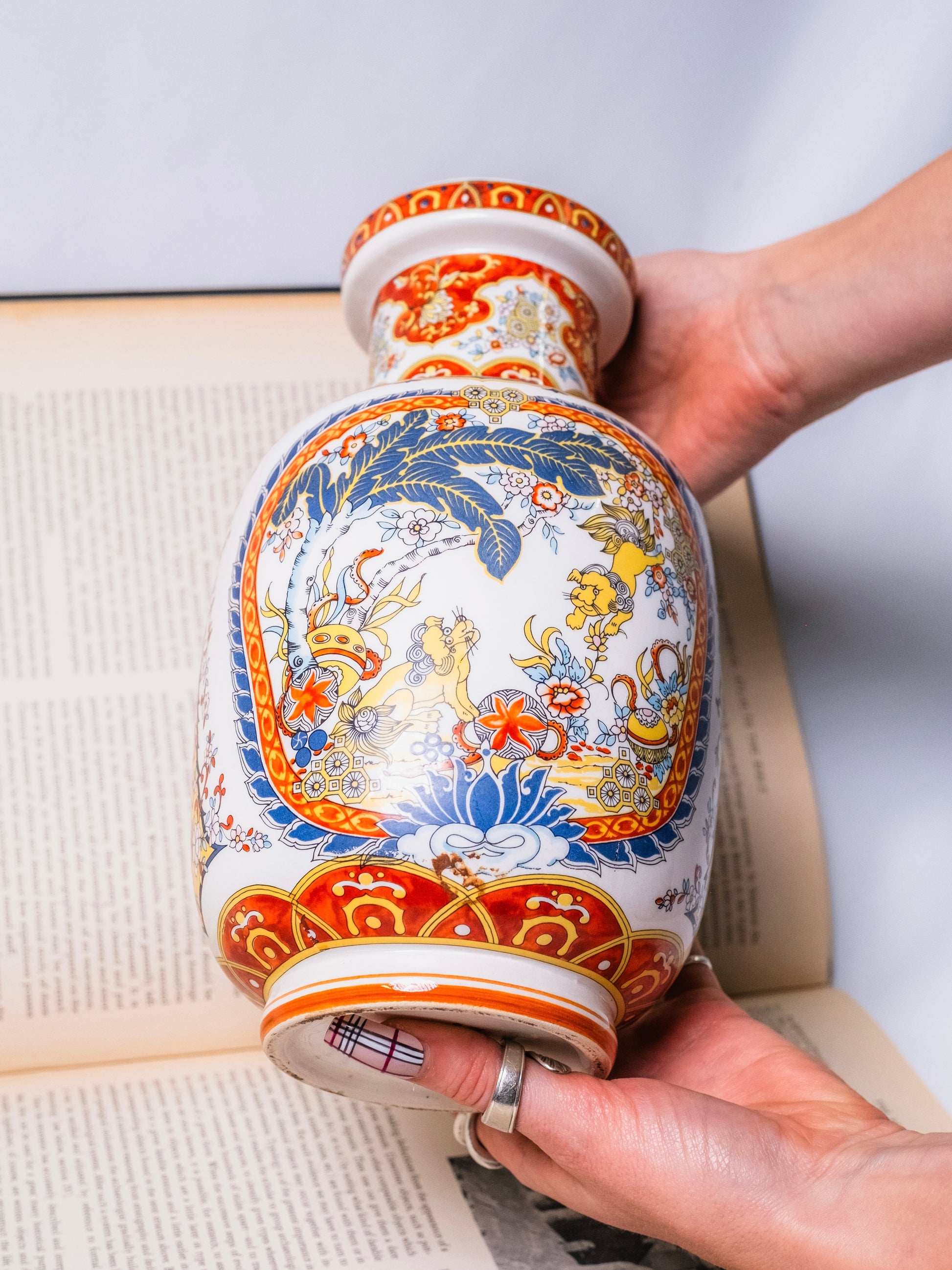 Vintage 1950s Eken Ceramic Foo Dog Painted Vase.
