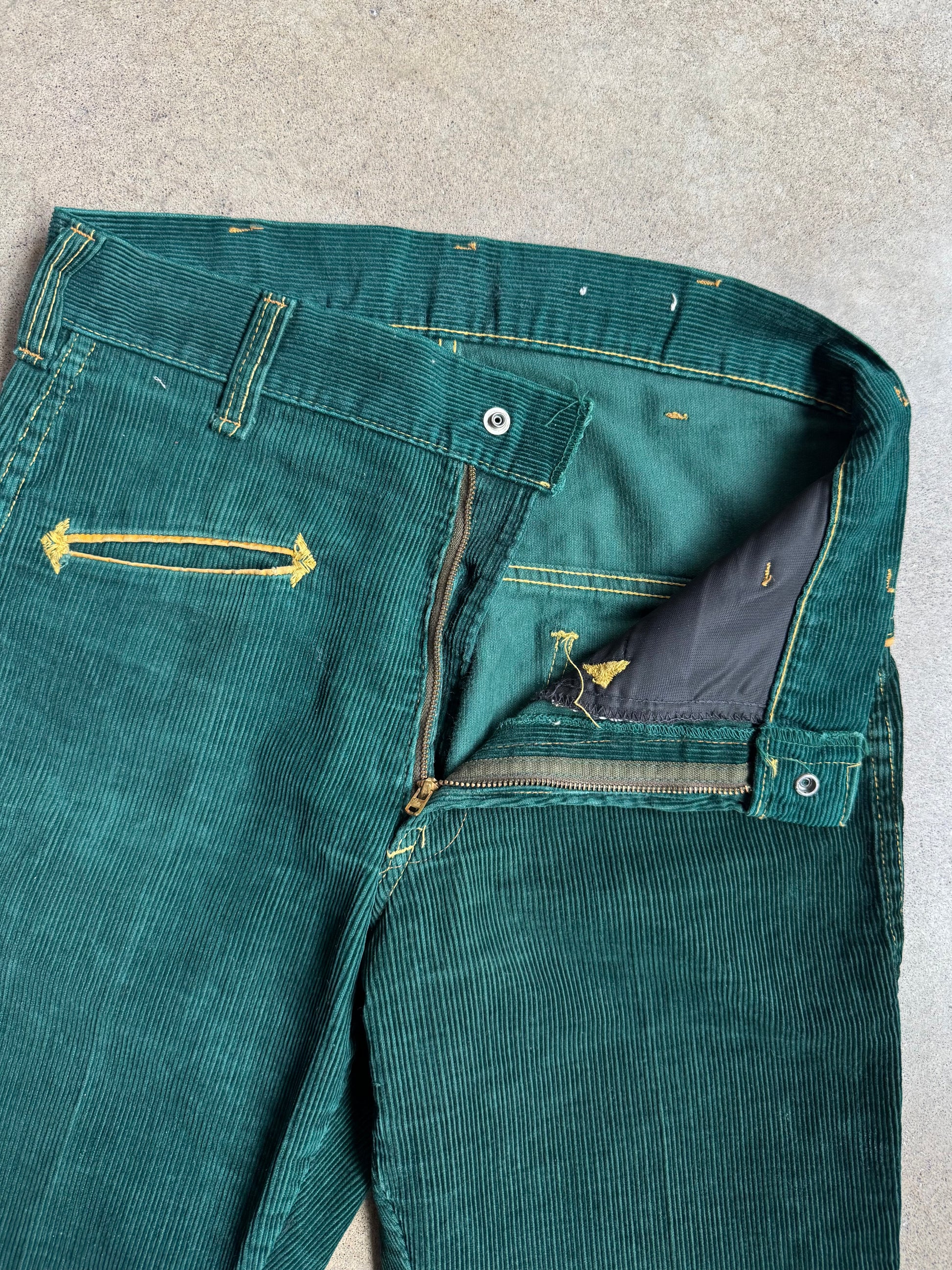 Vintage 1960s Western Green Corduroy Flared Pants | Waist 30”