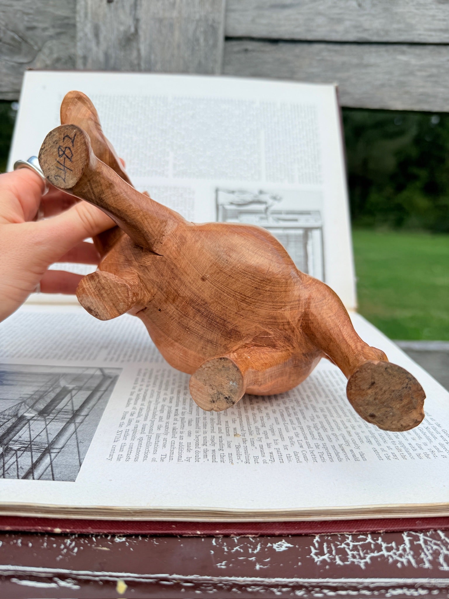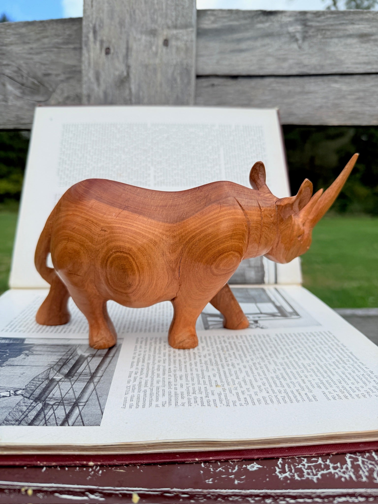 Vintage 1950s Hand-Carved Wooden Rhino Figurine.
