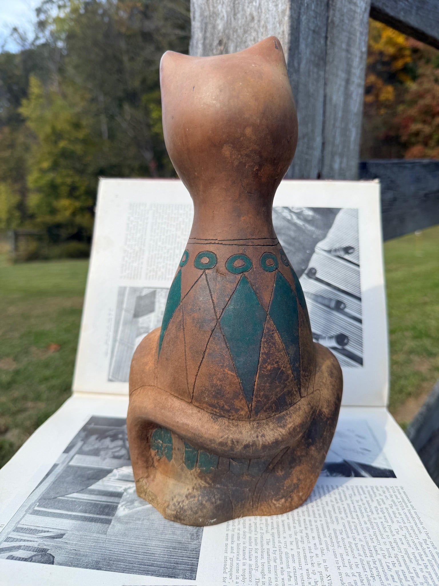 Vintage 1950s Handmade Pottery Oaxaca Mexican Cat Statue