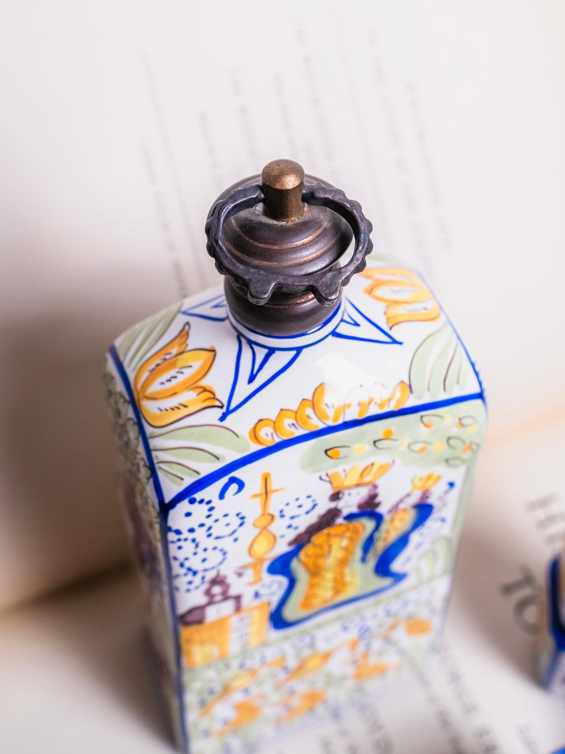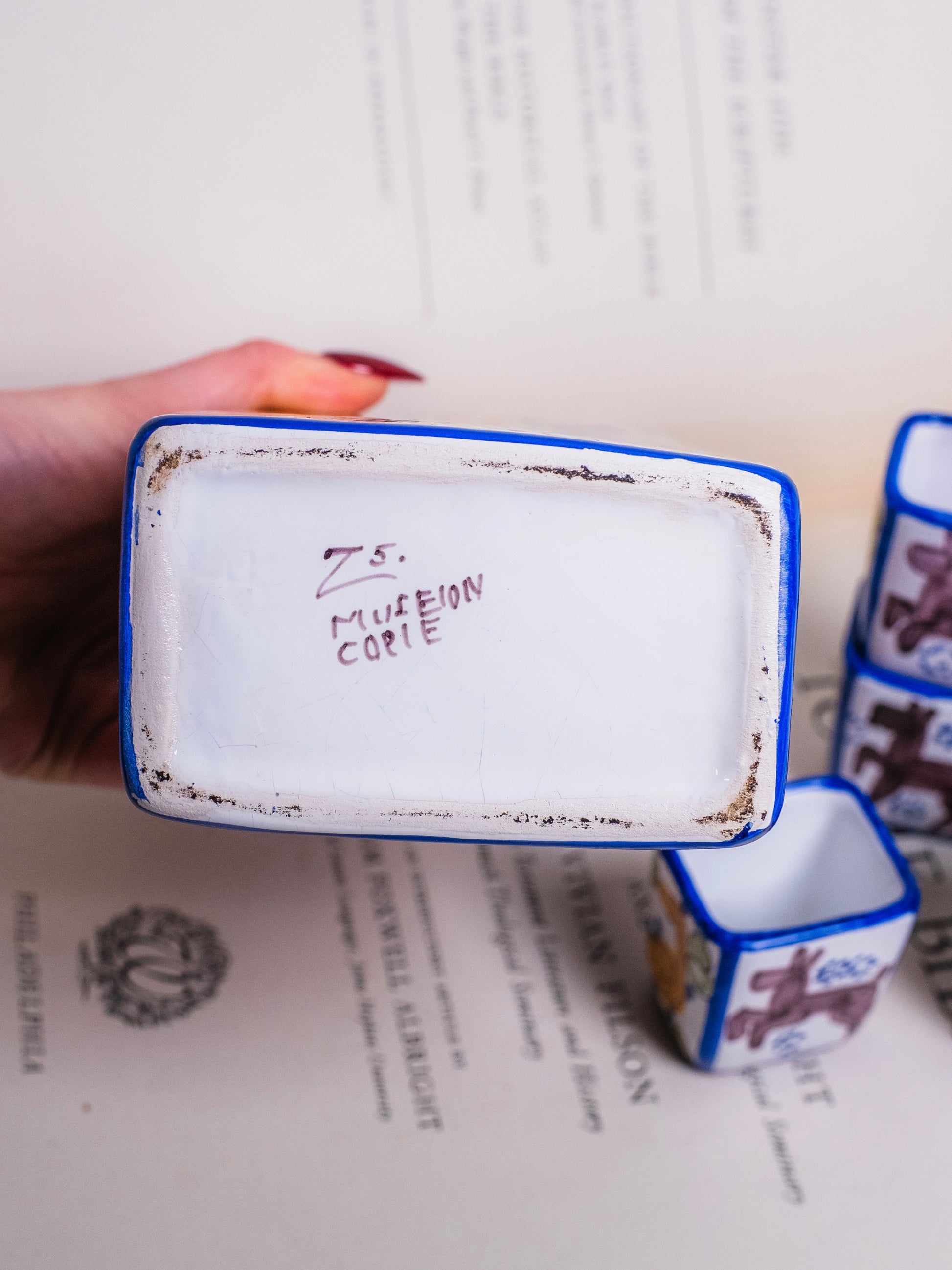 Vintage 1950s Italian Hand-Painted Ceramic Decanter + Shot Glass Set (4).