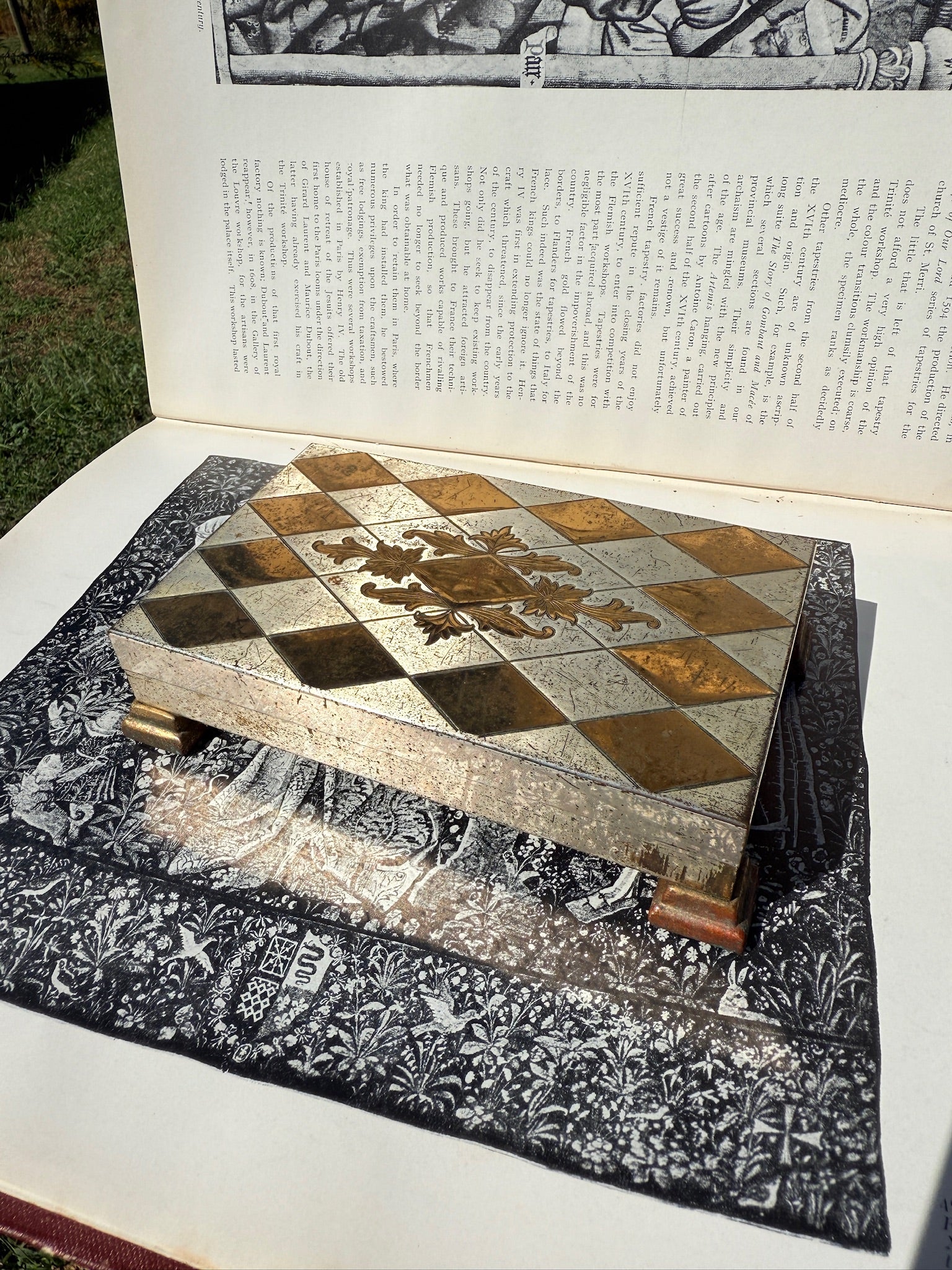 Vintage 1950s Gold-Tone Metal Footed Cigarette Box.