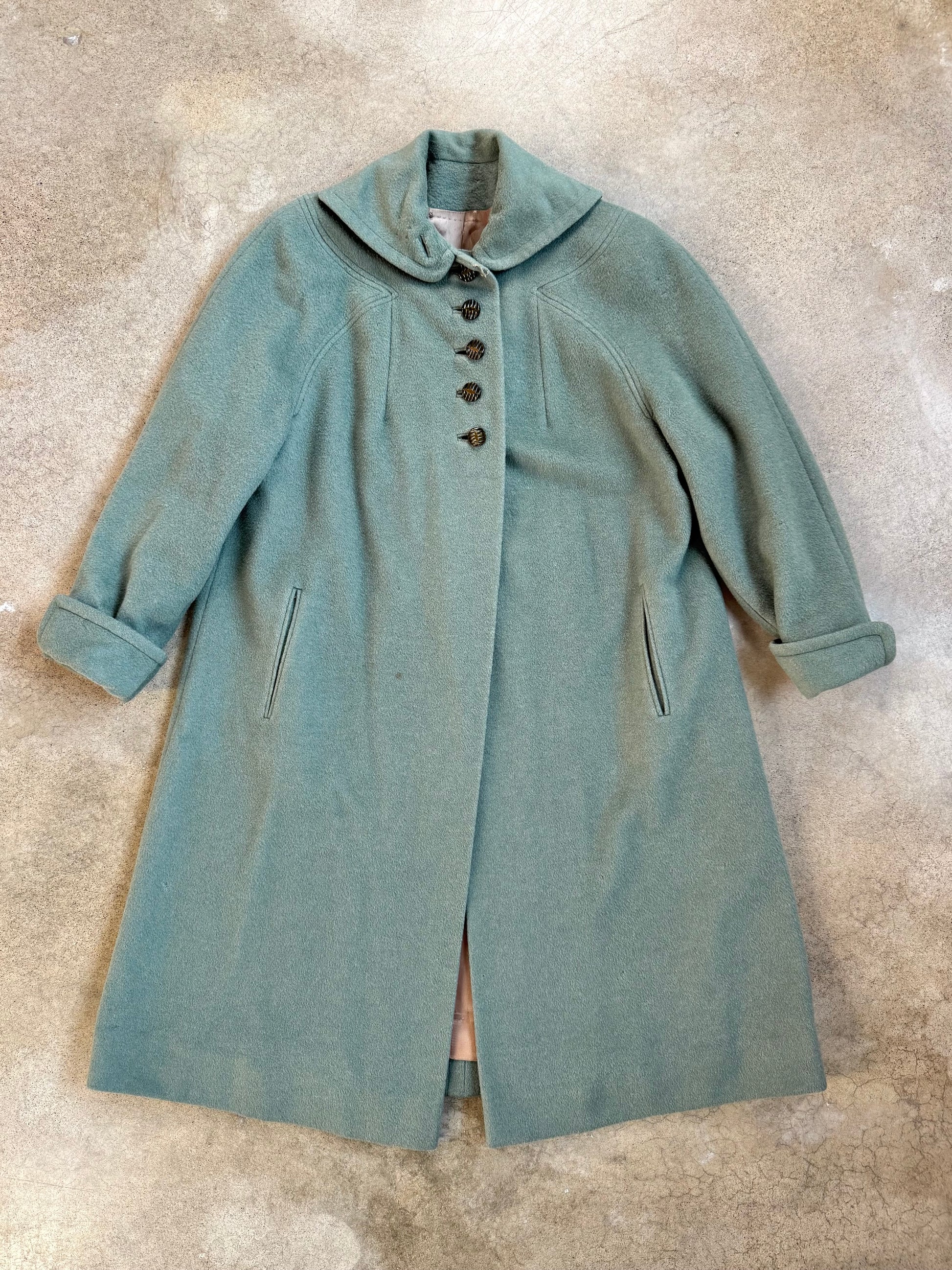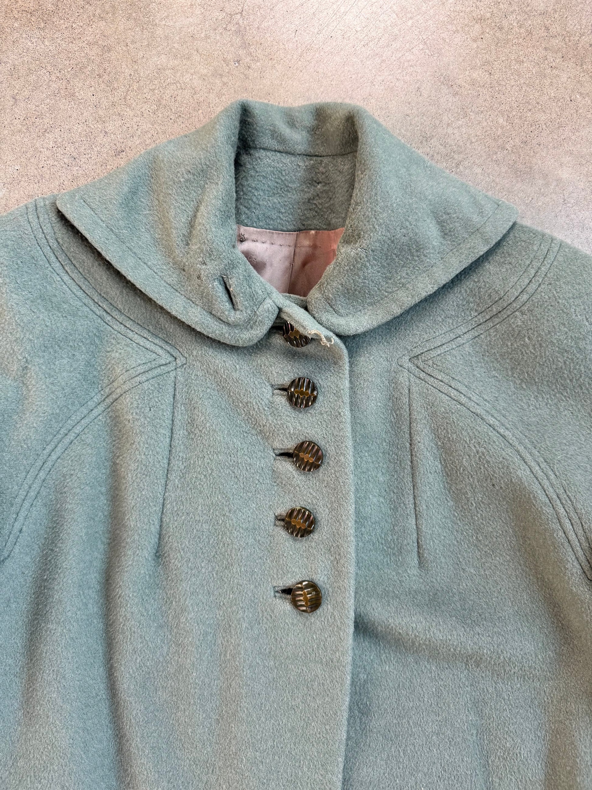 Vintage 1940s Miss Mode Mint Green Wool Swing Coat | Medium