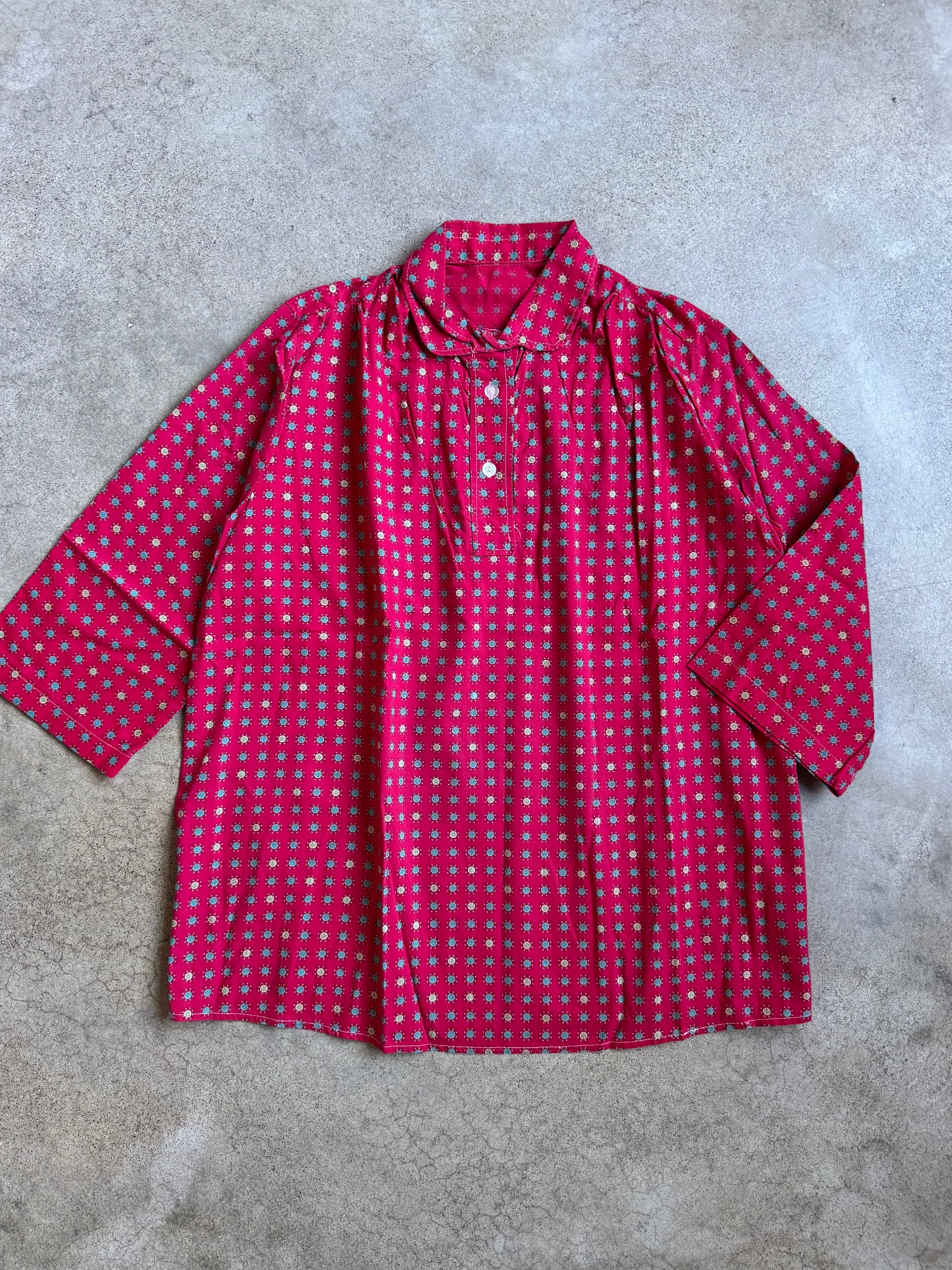 Vintage 1950s Red Floral Print Cotton Collared Shirt.