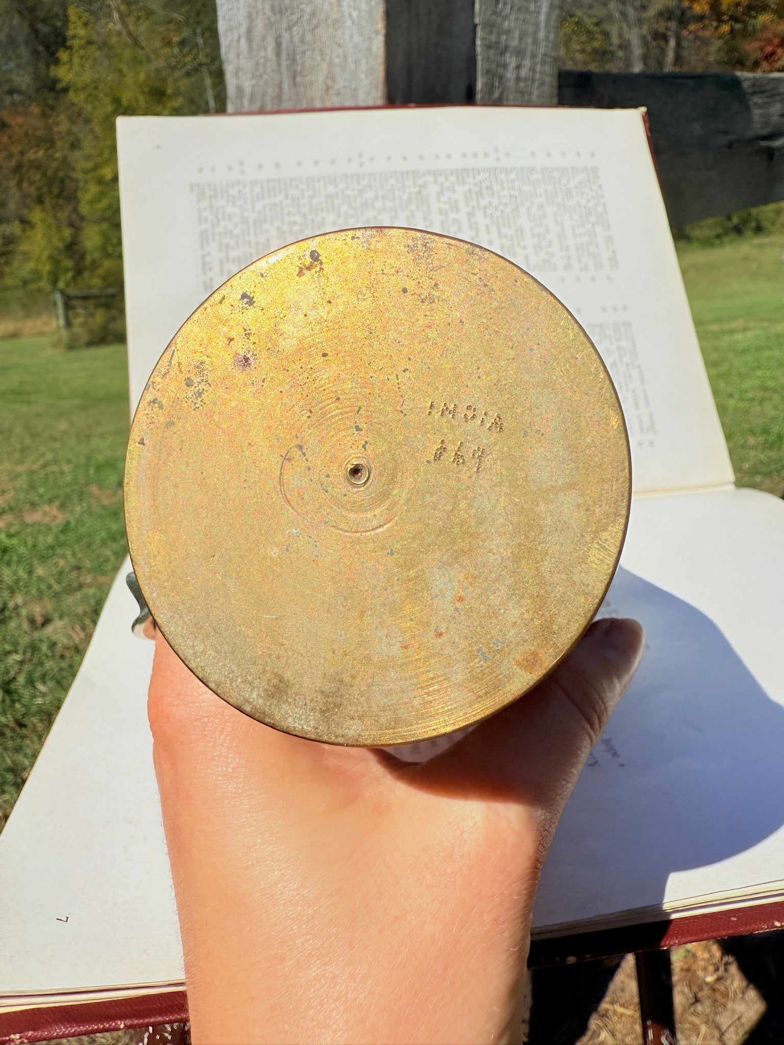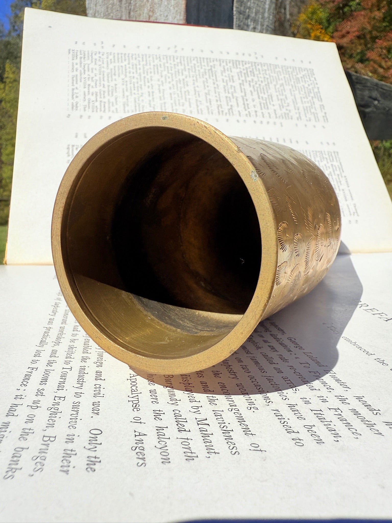 Vintage 1950s Solid Brass Floral Etched Vase.