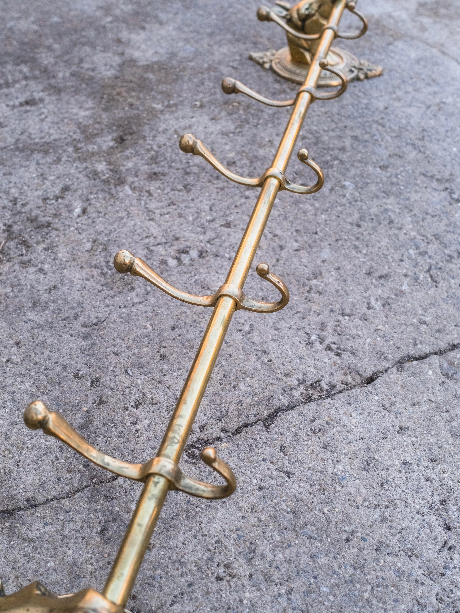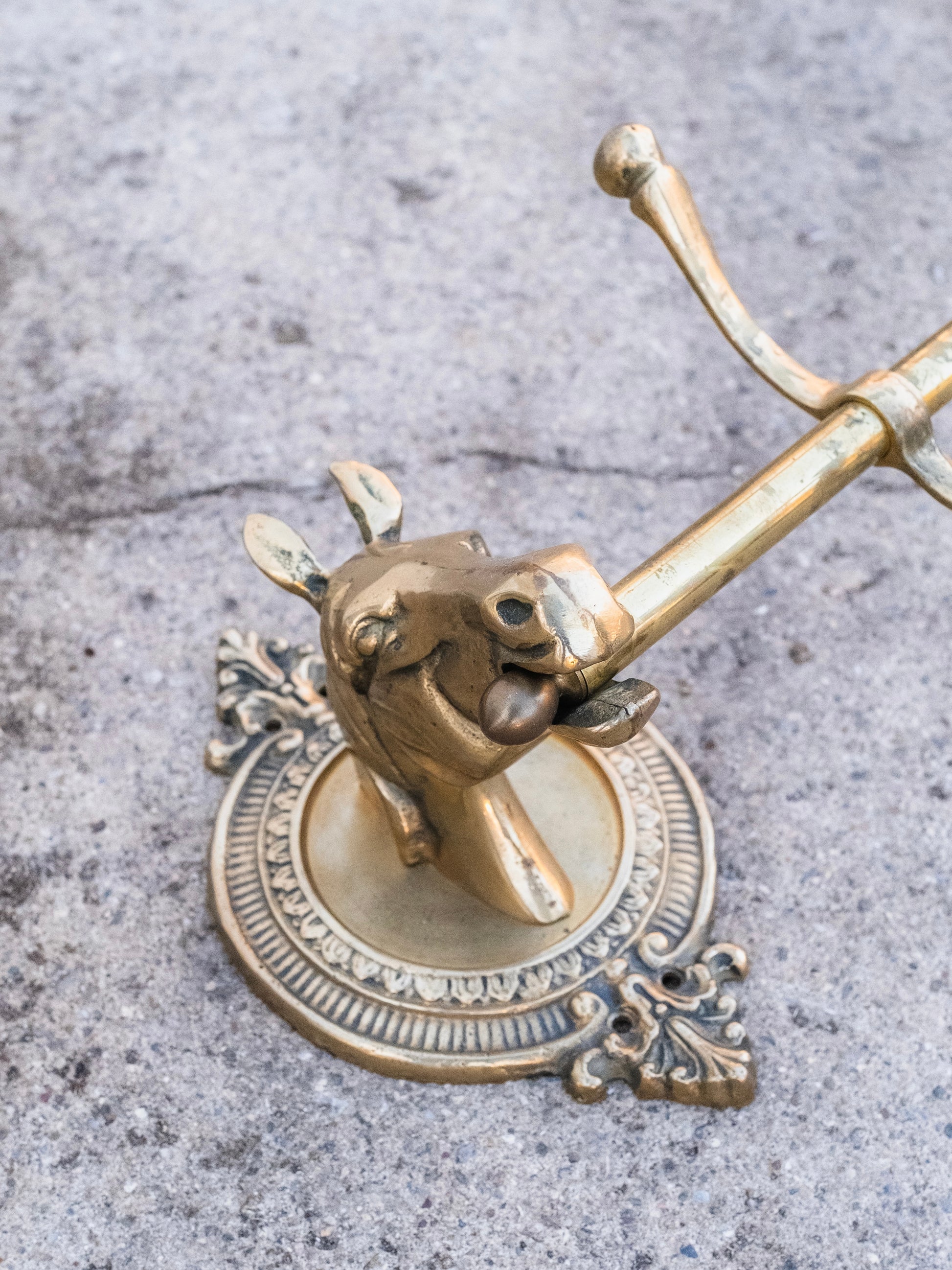 Vintage 1950s Solid Brass Horse Head Five Prong Wall-Mounted Coat Rack