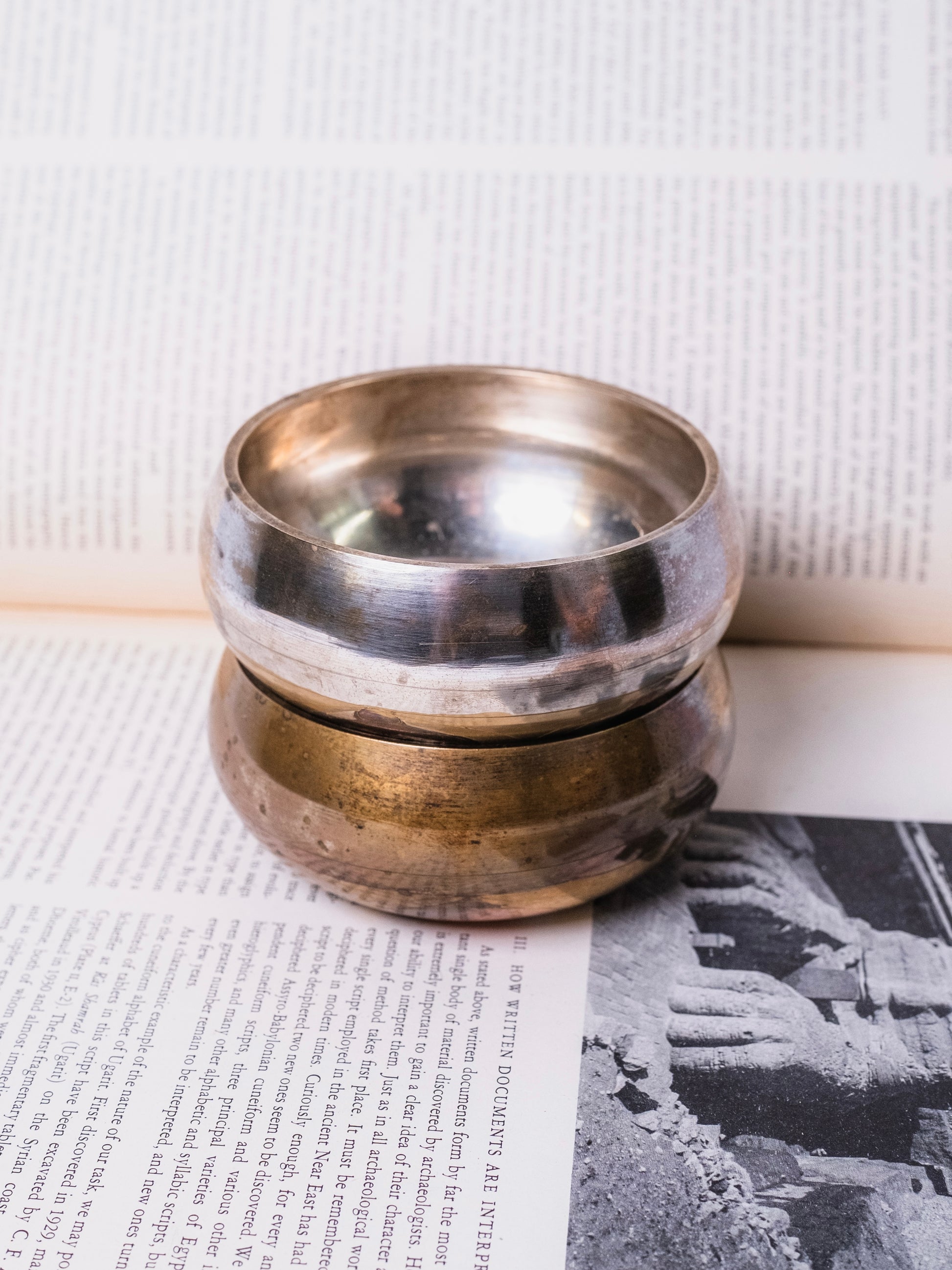 Vintage 1950s Tibetan Metal Inlay Singing Bowls | Set of 2