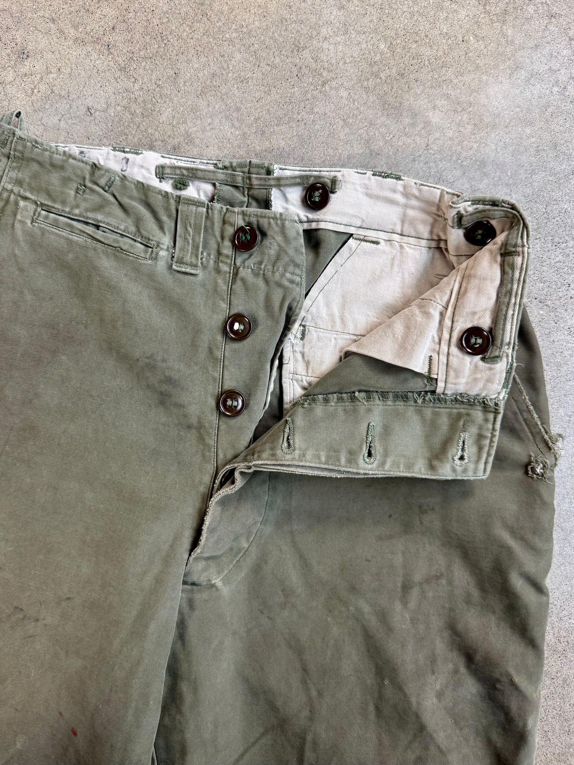 Vintage 1940s WW2 U.S. Military Distressed Cotton Field Trousers | Waist 30”